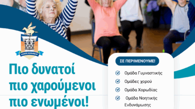 Με αφορμή τη Παγκόσμια Ημέρα για την Τρίτη Ηλικία, τη Τετάρτη 1η Οκτωβρίου 2025 το Τμήμα Μέριμνας Τρίτης Ηλικίας του Δήμου Κορινθίων ανακοινώνει την ...