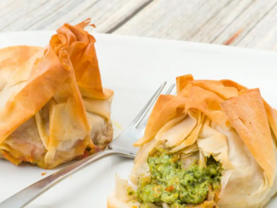 Μαγικές αλχημείες τραγανότητας και γεύσης, αυτά τα ντελικάτα πουγκάκια. Γεμίζονται με κοτόπουλο, πέστο και μοτσαρέλα και συνδυάζουν την ζεστή, αρωματική γέμιση με τραγανό φύλλο κρούστας. Η φρεσκάδα του πέστο και ο χυμός του λεμονιού ισορροπούν την ...