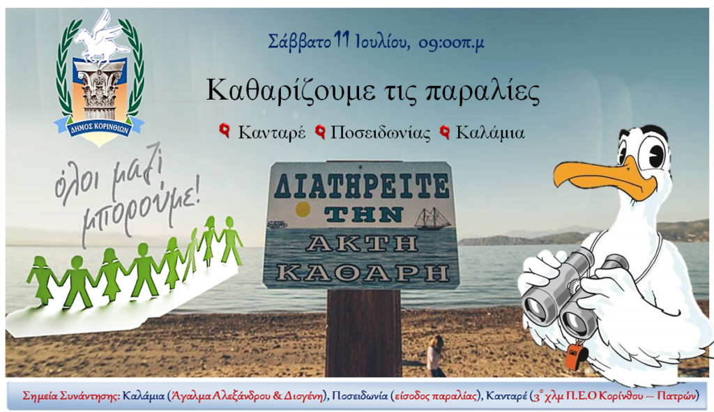 «Ελάτε να φροντίσουμε τις παραλίες του τόπου μας!  Ελάτε να στείλουμε το μήνυμα «ΠΑΜΕ ΚΟΡΙΝΘΟ» παντού!»
