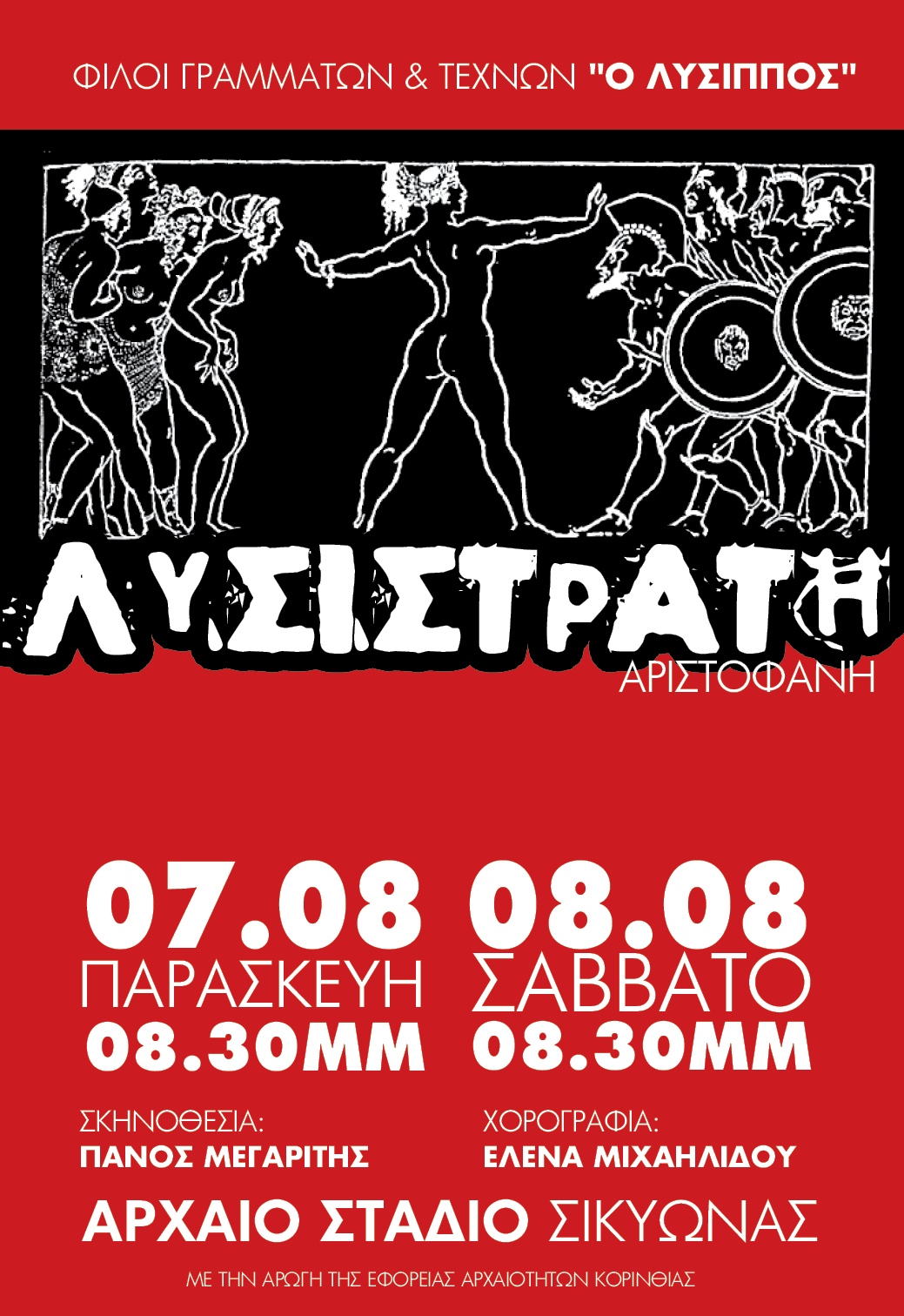 Την κωμωδία “Λυσιστράτη” του Αριστοφάνη θα ανεβάσει ο Πολιτιστικός Σύλλογος Λύσιππος, για δύο θεατρικές παραστάσεις, στο Αρχαίο Στάδιο της Σικυώνας.