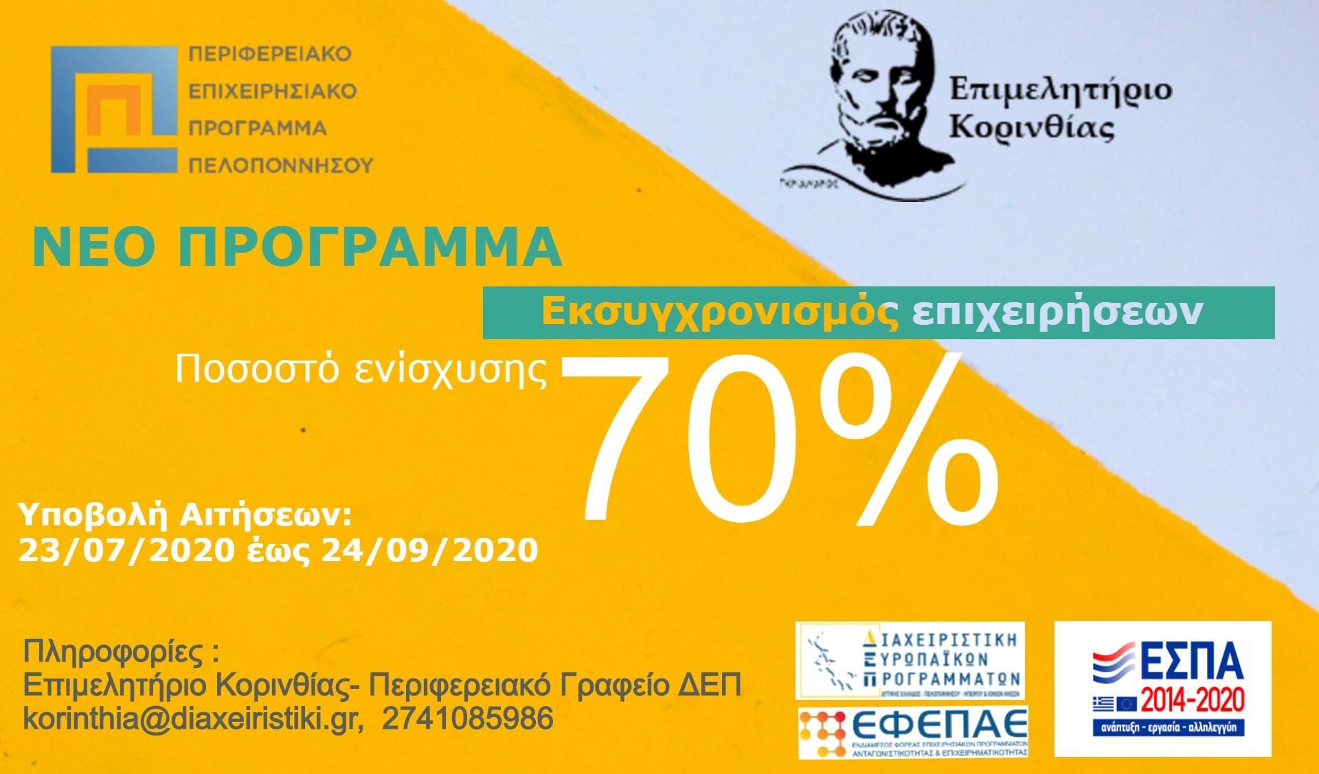 Δείτε εδώ αναλυτικά την Πρόσκληση. Σημείο Πληροφόρησης: Επιμελητήριο Κορινθίας – Περιφερειακό Γραφείο ΔΕΠ Λάσκα Πένυ, 2741024464 (924) , korinthia@diaxeiristiki.gr