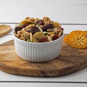 Κάνε μία βόλτα σε ένα μεγάλο μαγαζί με ξηρούς καρπούς και θα ανακαλύψεις απίστευτες γεύσεις. Αγόρασε ό,τι θες αρκεί να θυμάσαι «άψητοι και ανάλατοι». Συνδύασε και μερικά αποξηραμένα φρούτα. Όταν επιστρέψεις στο σπίτι, πάρε ένα μεγάλο γυάλινο μπολ και βάλε μέσα όλους τους όμορφους εξωτικούς καρπούς που αγόρασες. Το δικό μου αγαπημένο μίγμα περιλαμβάνει κάσιους, αμύγδαλα, καρύδια Βραζιλίας, κυβάκια καρύδας, αποξηραμένα goji berries και αποξηραμένο μάνγκο. Μία χουφτίτσα από αυτό το μίγμα στο διάλειμμα σου θα σου δώσει πληθώρα βιταμινών και ιχνοστοιχείων και θα σε γεμίσει ενέργεια και όρεξη για δουλειά!