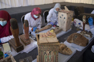 Τη μεγαλύτερη αρχαιολογική της ανακάλυψη για το έτος 2020 παρουσίασε το Σάββατο η Αίγυπτος,φέρνοντας στο φως μία μοναδική συλλογή εκατό άθικτων σαρκοφάγων της 26ης Δυναστείας,που ανακαλύφθηκαν στη Νεκρόπολη της Σακκάρα.