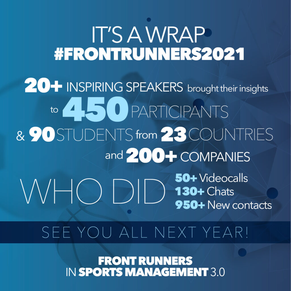 Οι ομιλίες του συνεδρίου θα είναι διαθέσιμες on demand μέσω της επίσημης πλατφόρμας,για όσους είχαν ήδη κάνει εγγραφή στο ακόλουθο link: https://frontrunners-sportsmanagement.liveon.tech/stages ή για όσους κάνουν ακόμα και τώρα εγγραφή.
