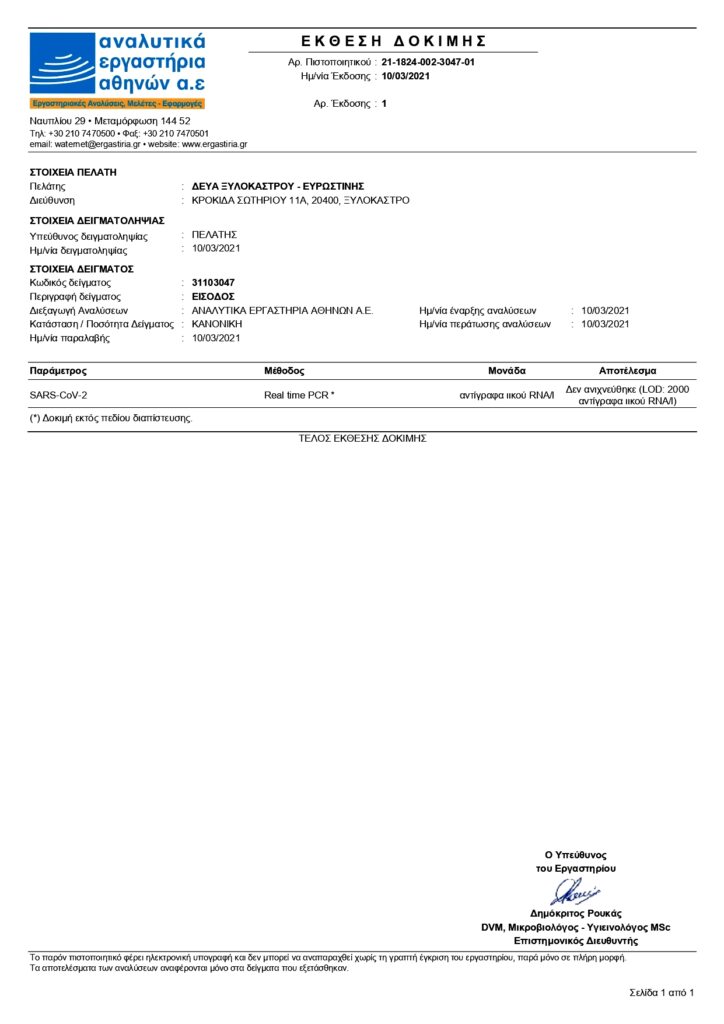 Η Κορινθία μας έχει βρεθεί πλέον στο επίκεντρο της πανδημίας, καθημερινά συνάνθρωποί μας νοσούν, οικογένειες δοκιμάζονται, βρισκόμαστε όλοι σε μια κατάσταση συναγερμού. Ο Δήμος Ξυλοκάστρου-Ευρωστίνης εφαρμόζει από την πρώτη μέρα πιστά τις οδηγίες των αρμοδίων ώστε να προασπίσει όσο είναι δυνατό την δημόσια υγεία. Πάνω από όλα όμως οι δημότες μας έχουν δείξει μέχρι σήμερα ιδιαίτερη υπευθυνότητα και συνεργασία, με αποτέλεσμα ο Δήμος μας να βρίσκεται υγειονομικά σε ικανοποιητικό επίπεδο. Όλες οι μετρήσεις των λυμάτων του βιολογικού καθαρισμού που διενεργεί ο Δήμος μας σε τακτά διαστήματα αποδεικνύουν ότι οι προσπάθειες όλων μας επιβραβεύονται.