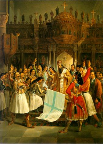 Ο ξεσηκωμός των Ελλήνων άρχισε λίγο μετά την ήττα τού Ναπολέοντα, όταν η Ευρώπη, για δικούς της λόγους, ήταν αντίθετη σε κάθε είδους εξέγερση. Οι επαναστατημένοι Έλληνες κατόρθωσαν να πείσουν τις ευρωπαϊκές δυνάμεις τής εποχής ότι τον αγώνα τους δεν υποκίνησε κάποια κοινωνική τάξη ούτε η σύγκρουση κοινωνικών συμφερόντων και δεν αποσκοπούσε σε πολιτειακή αλλαγή ούτε στόχευε στην απομάκρυνση ανίκανων ηγετών, όπως συνέβαινε στα περισσότερα επαναστατικά κινήματα μέχρι τότε. Αντίθετα επεδίωκε την απελευθέρωση ενός έθνους. Ελλάδα δεν υπήρχε. Οι Έλληνες, όμως, ποτέ δεν δέχθηκαν ότι η χώρα τους χάθηκε, δεν λησμόνησαν το παρελθόν τής φυλής τους και περίμεναν την κατάλληλη στιγμή για να απελευθερωθούν. Και όταν έφθασε το πλήρωμα τού χρόνου, ένας αγράμματος, φτωχός και κατατρεγμένος λαός τόλμησε να υψώσει το ανάστημά του με μοναδικό εφόδιο «τής καρδιάς το πύρωμα».