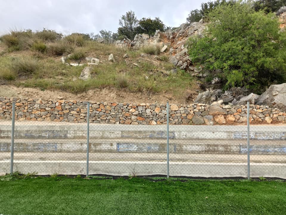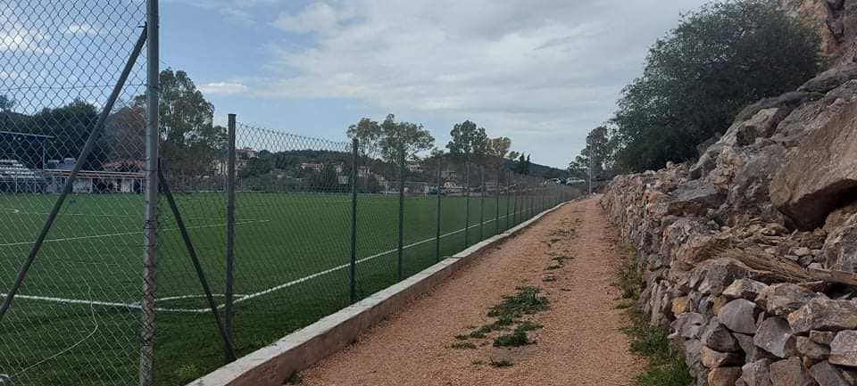 • Την κατασκευή μικρού τοιχίου περιμετρικά του γηπέδου ύψους 40εκ με σκοπό την αποφυγή πλημμυρικών φαινομένων στον αγωνιστικό χώρο.