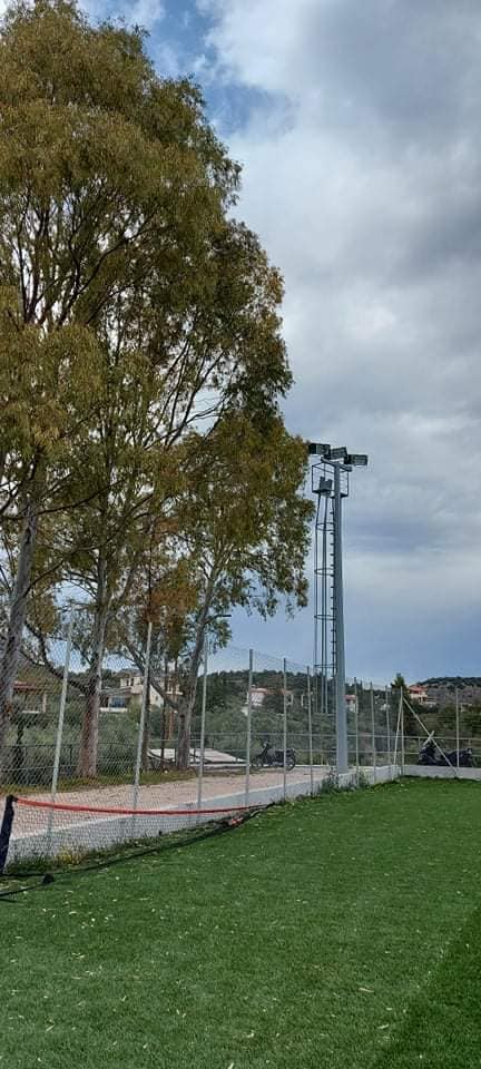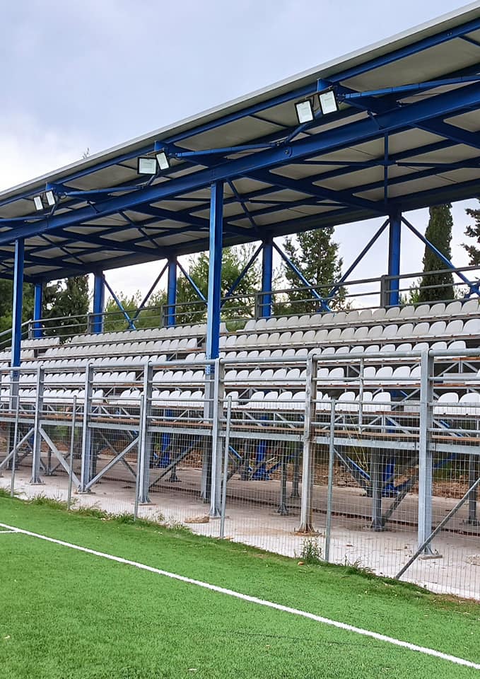 • Την εγκατάσταση νέου φωτισμού που απαρτίζεται από 4 πυλώνες φωτισμού καθώς και 16 προβολείς τεχνολογίας led κατά μήκος της οροφής της κερκίδας.
