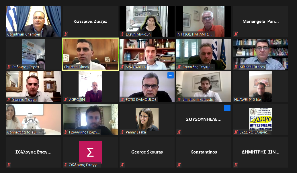 Ο Πρόεδρος του ΠΕΣΠ και του Επιμελητηρίου Κορινθίας κος Παναγιώτης Πιτσάκης, τόνισε την πολύ μικρή συμμετοχή της Περιφέρειας Πελοποννήσου στο μητρώο νεοφυών επιχειρήσεων, σε ποσοστό μόλις 0.5% και εξέφρασε την ελπίδα του ότι με τις κατάλληλες συνέργειες μεταξύ της Περιφέρειας Πελοποννήσου, του υπουργείου Ανάπτυξης και επενδύσεων και των Επιμελητηρίων θα επιτευχθεί η δημιουργία θερμοκοιτίδων μέσω των Επιμελητήριων για την ανάπτυξη της νεοφυούς επιχειρηματικότητας.