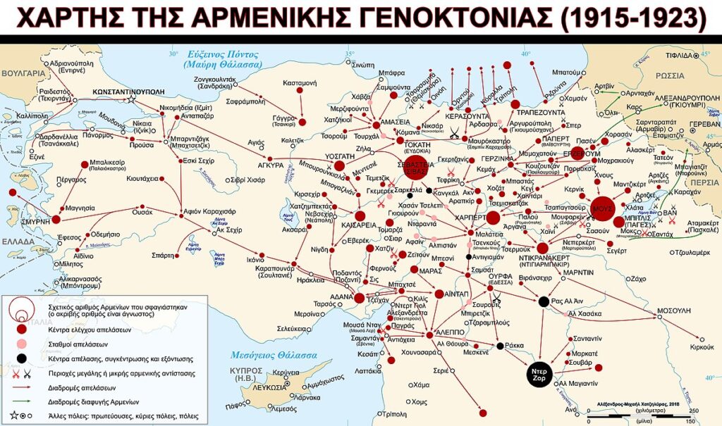 Πάνω από 1,5 εκατομμύρια Αρμένιοι, δηλαδή το 80% του Αρμενικού πληθυσμού της Δυτικής Αρμενίας, χάθηκε στην πρώτη γενοκτονία του 20ου αιώνα… Ένας μικρός, σχετικά, αριθμός επιζώντων βρήκε καταφύγιο στις γειτονικές χώρες -μεταξύ αυτών και στην Ελλάδα – συγκροτώντας σταδιακά τη μεγάλη Αρμενική Διασπορά. Στις επαρχίες της Δυτικής Αρμενίας, που εντάσσονται στο νεοσυσταθέν Τουρκικό κράτος, μόνον τα ερείπια της πλούσιας αρμενικής αρχιτεκτονικής κληρονομιάς θυμίζουν πλέον την τρισχιλιετή παρουσία των γηγενών Αρμενίων…