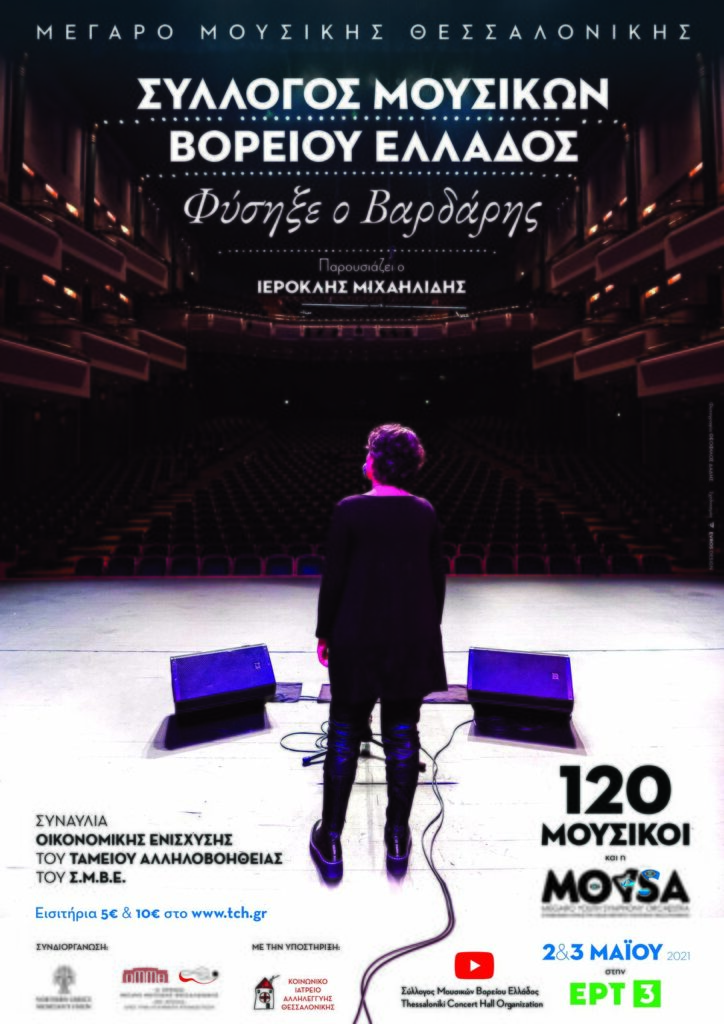 Το Μέγαρο Μουσικής Θεσσαλονίκης και ο Σύλλογος Μουσικών Βορείου Ελλάδος ένωσαν τις δυνάμεις τους και δημιούργησαν δύο συναυλίες, διάρκειας 90 λεπτών η μία, με τους τραγουδιστές και τους δημιουργούς διαμοιρασμένους σε εννιά μουσικά υποσύνολα. Οι συναυλίες, τις οποίες προλογίζει και σχολιάζει επί σκηνής -επίσης αφιλοκερδώς- ο Ιεροκλής Μιχαηλίδης, θα προβληθούν από την ΕΡΤ3 στις 2 και 3 Μαΐου, ενώ θα είναι διαθέσιμες από τις 22 Μαΐου η πρώτη και από τις 23 Μαΐου η δεύτερη από το κανάλι του ΟΜΜΘ στο ΥouΤube και από το κανάλι του ΣΜΒΕ (Σύλλογος Μουσικών Βορείου Ελλάδος – YouTube).