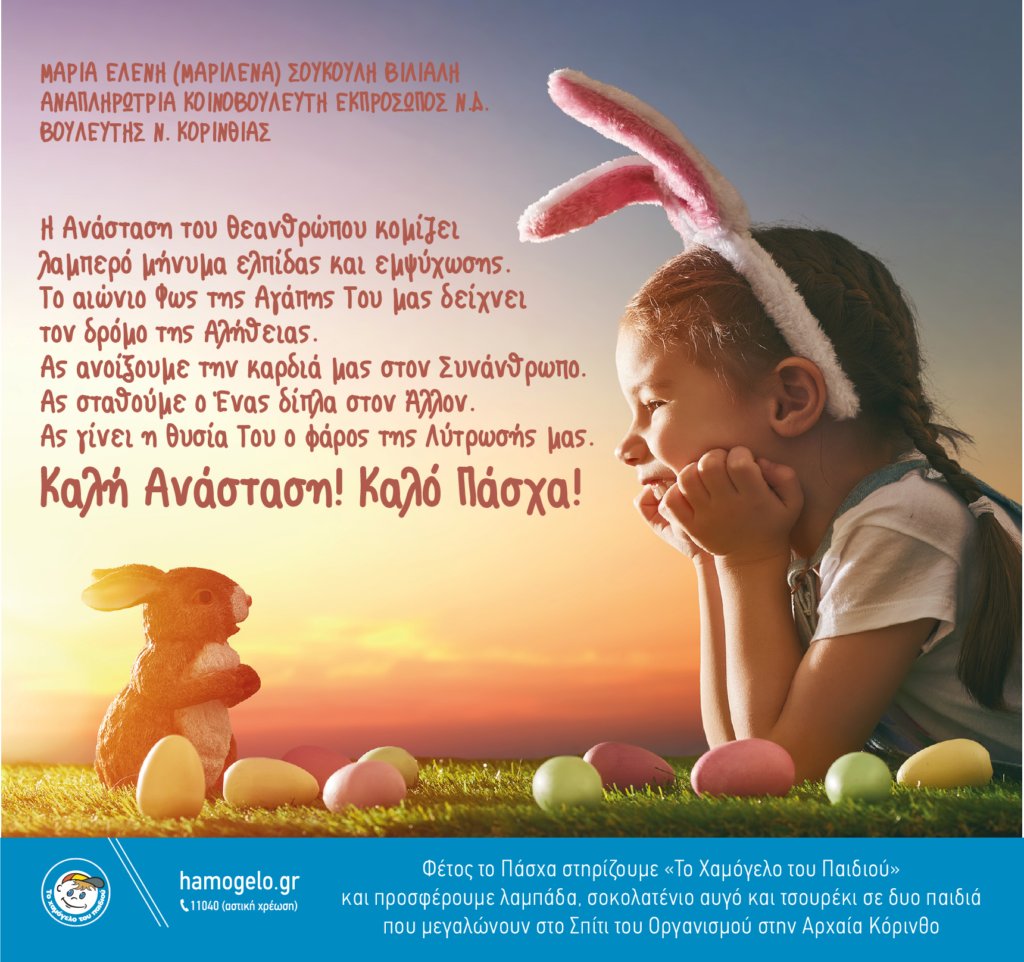 ShareTweet 0 Τις ευχές του εν όψει Πάσχα στέλνει στους πολίτες η Βουλευτής Κορινθίας Μαριλένα Σούκουλη Βιλιάλη.