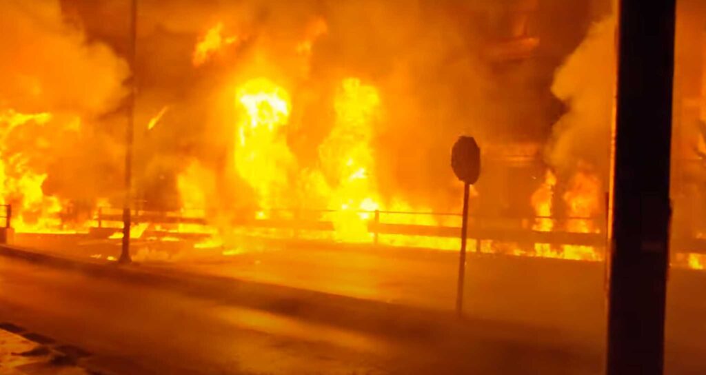 Σύμφωνα με την Πυροσβεστική, η ρίψη μολότοφ είχε σαν αποτέλεσμα να ξεσπάσει φωτιά σε δέντρα κοντά στην οδό Λαγουμιτζή στη γέφυρα της περιοχής.
