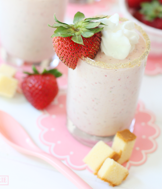 Φράουλα: Αναμείξτε σε μίξερ μια μπάλα παγωτό φράουλα, 1 κούπα φράουλες και 1/4 κούπας γάλα.