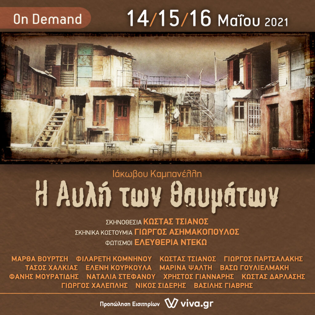 Oι επιχειρήσεις Λεμπέση προβάλλουν από το viva.gr άλλη μία παράσταση από το αρχείο τους, που ενθουσίασε κοινό και κριτικούς, σε συνεργασία με την Μusic and Drama Productions, την Αυλή των Θαυμάτων του Ιακώβου Καμπανέλλη. Η παράσταση ανέβηκε στο Θέατρο Βεάκη το 1998 – 1999, σε σκηνοθεσία Κώστα Τσιάνου, με τους Μάρθα Βούρτση, Φιλαρέτη Κομνηνού, Κώστα Τσιάνο, Γιώργο Παρτσαλάκη, Τάσο Χαλκιά, Ελένη Κούρκουλα, Μαρίνα Ψάλτη, Βάσω Γουλιελμάκη, Φάνη Μουρατίδη, Χρήστο Γιάνναρη, Ναταλία Στεφάνου, Κώστα Δαρλάση, Γιώργο Χαλεπλή, Νίκο Σιδέρη, Βασίλη Γιαβρή.