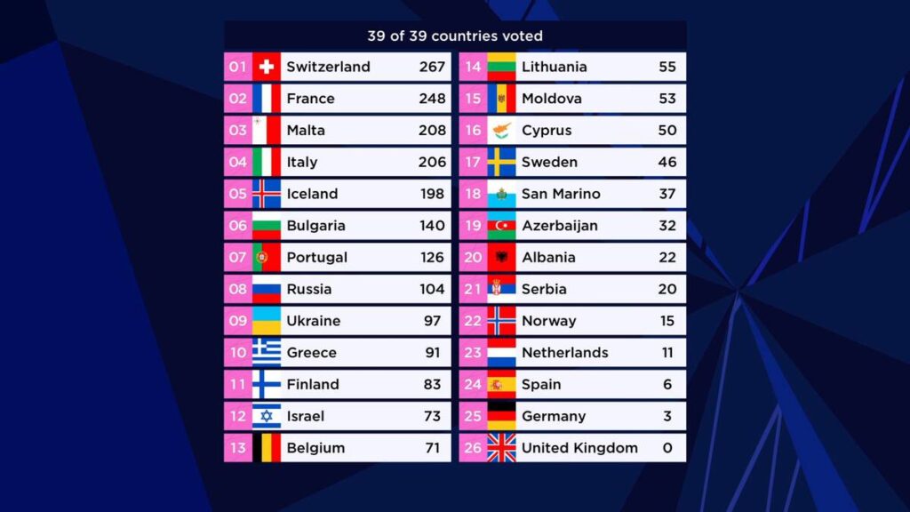 Η ψηφοφορία των κριτών έφερε στην πρώτη θέση την Ελβετία:
