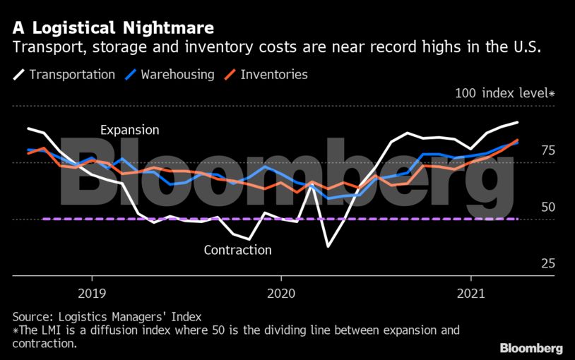 Είναι χαρακτηριστικό ότι ο δείκτης Logistics Manager’s, ο οποίος προσμετρά μηνιαία τις εκτιμήσεις αποθεμάτων, εξόδων μεταφοράς και εξόδων αποθήκευσης, βρίσκεται στο δεύτερο υψηλότερο επίπεδο από το 2016, ενώ δεν φαίνεται πως θα μειωθεί σε σύντομο χρονικό διάστημα. Ο δείκτης στο παρελθόν έχει αποδειχθεί εξαιρετικά ακριβής, με ποσοστό επιτυχίας 90%.