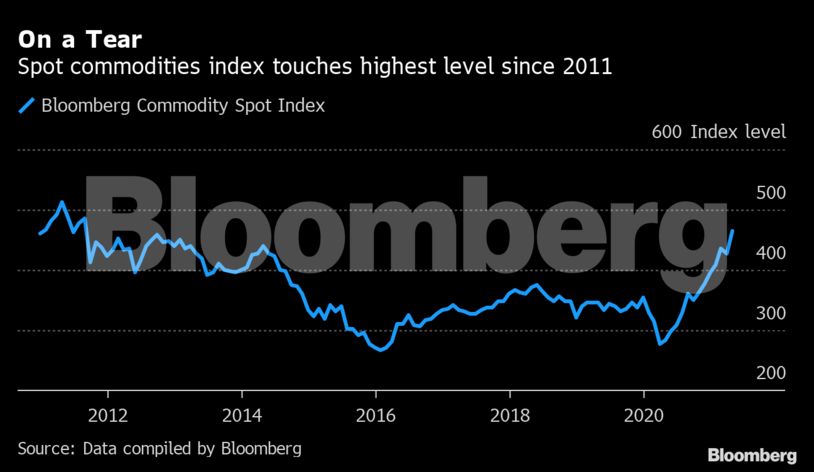 Ένας δείκτης του ΟΗΕ για τα τρόφιμα αυξήθηκε για 11ο συνεχόμενο μήνα τον Απρίλιο, σε ρεκόρ επταετίας. Στις αρχές του Μαΐου, ο δείκτης Bloomberg Commodity Spot Index έφτασε σε υψηλό δεκαετίας.