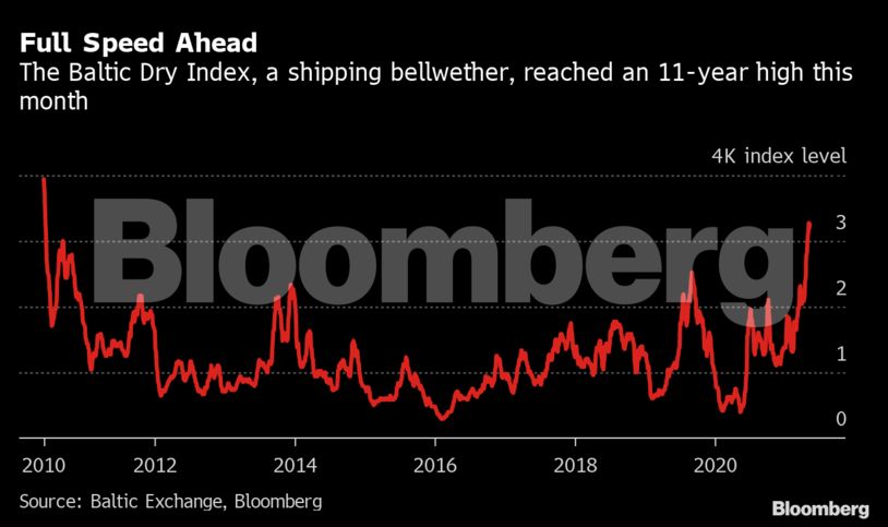 Σημαντικό ρόλο παίζει το ράλι της αμερικανικής οικονομίας, το οποίο είναι γρηγορότερο σε σχέση με τις περισσότερες οικονομίες. Η απόδειξη έγκειται στα δεκάδες φορτηγά-πλοία στις ακτές της Καλιφόρνια τα οποία περιμένουν να ξεφορτώσουν στα λιμάνια της πολιτείας. Τα περισσότερα αγαθά καταφτάνουν από την Κίνα, όπου οι τιμές των παραγωγών επέδειξαν αύξηση-ρεκόρ 4ετίας τον Απρίλιο.