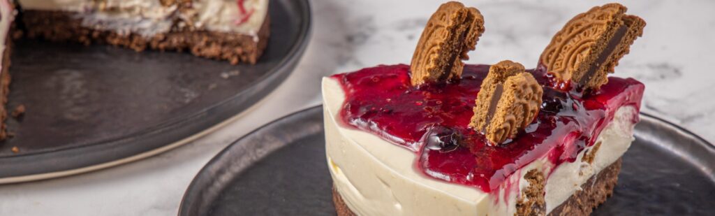 Για το τσιζκέικ με μπισκότα Γεμιστά Παπαδοπούλου με σοκολάτα και μαρμελάδα φρούτα του δάσους.