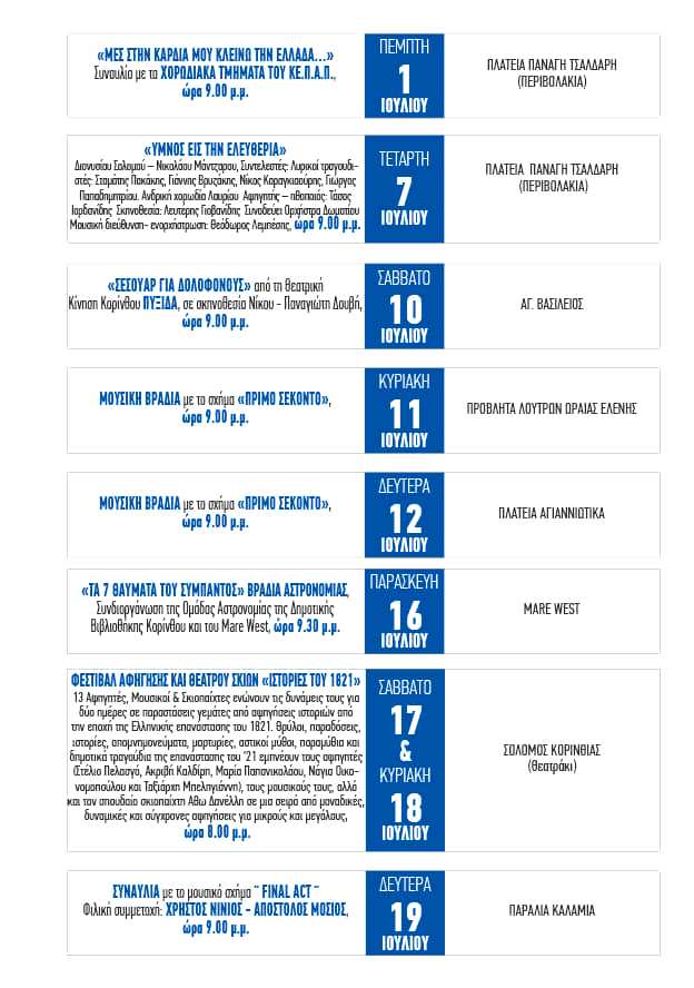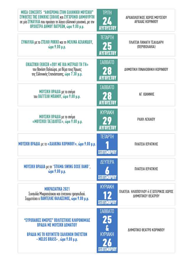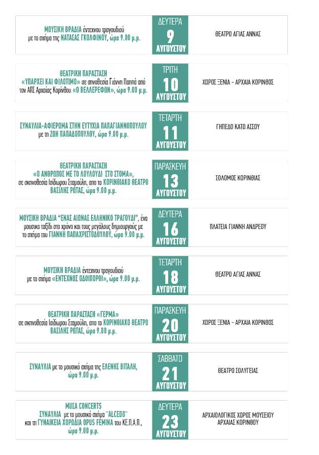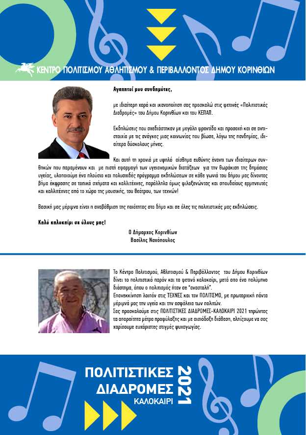 «Πολιτιστικές Διαδρομές» Δήμου Κορινθίων, τολμά και δίνει το παρόν με πολυθεματικές επιλογές πολιτισμού και ψυχαγωγίας, δωρεάν είσοδο για το κοινό.