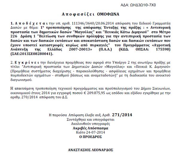 Και όλα αυτά έγιναν λόγω του προγράμματος «Αγροτική ανάπτυξη της Ελλάδας 2007-2013 (Π.Α.Α.) όπου μπορούσαμε να επενδύσουμε 209.875 ευρώ στα δύο αλσύλλια. Αντί αυτού χρησιμοποιήθηκε ένα ποσό για δήθεν αντιπυρική προστασία και τα υπόλοιπα χρήματα πήγαν για GPS στα οχήματα του Δήμου !!! Καλά και τα GPS αλλά η ευκαιρία για την αξιοποίηση του Πευκιά πήγε περίπατο.
