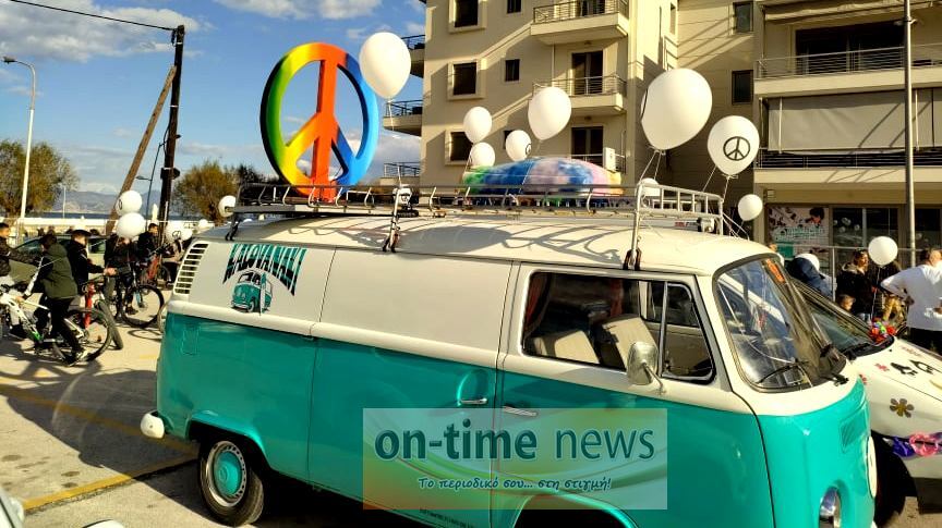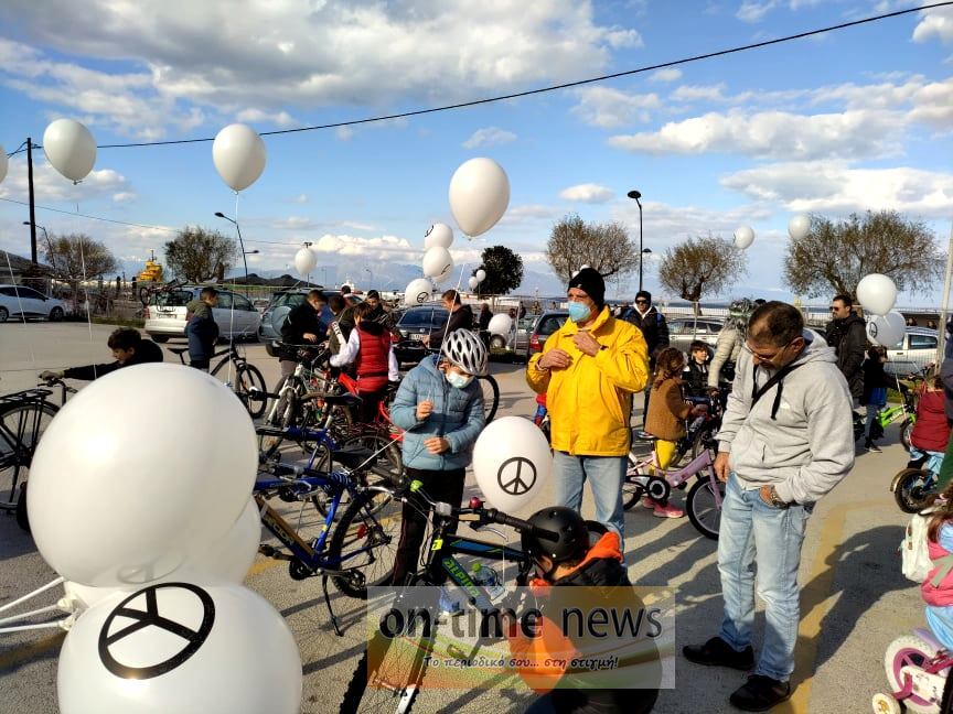 Εκατοντάδες ποδήλατα, με ποδηλάτες κάθε ηλικίας με λευκά μπαλόνια και το σήμα της ειρήνης, ξεχύθηκαν και στην κυριολεξία πλημμύρισαν τους δρόμους του Κιάτου. Η ποδηλατοπαρέλαση μόλις είχε ξεκινήσει και τα συναισθήματα είδη, σαν μία αόρατη δύναμη, ένωναν τους συμμετέχοντες με τους περαστικούς, τους κατοίκους και τους θαμώνες σε καφετέριες και εστιατόρια, με αποτέλεσμα η ποδηλατοπαρέλαση να γίνεται δεκτή με ιαχές και χειροκροτήματα, δημιουργώντας ένα απίστευτα ζεστό κλίμα που έδειξε την ανάγκη επικοινωνίας, αγωνίας και ελπίδας όλων μας, στο όνομα της ΕΙΡΗΝΗΣ, της ανθρωπιάς, της αγάπης, της αλληλεγγύης και του σεβασμού.
