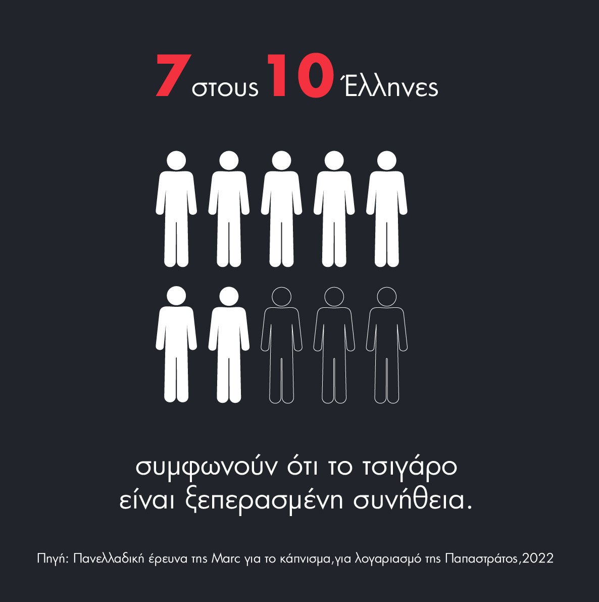 Η κα. Λένα Πλαΐτη, Γενική Διευθύντρια Επικοινωνίας της Παπαστράτος, σχολιάζοντας τα ευρήματα της έρευνας, σημείωσε: «Για 2η συνεχή χρονιά παρουσιάζουμε τα αποτελέσματα της πανελλαδικής έρευνας της Marc για το τσιγάρο, η οποία μας βοηθά να κατανοήσουμε όσα συμβαίνουν στην κοινωνία τόσο από τη μεριά των καπνιστών όσο και από εκείνη των μη καπνιστών για μία συνήθεια που παρότι θεωρείται ξεπερασμένη συνεχίζει να υιοθετείται από 1 στους 4 Έλληνες. Δέσμευση που ακολουθεί κάθε πράξη μας στην Παπαστράτος είναι να μειώσουμε τους καπνιστές στην Ελλάδα κατά 1,5 εκατομμύριο μέχρι το 2025. Με όχημα την επιστήμη εντείνουμε τις προσπάθειές μας ώστε να υπάρχουν εναλλακτικές, καινοτόμες λύσεις για όσους επιμένουν να καπνίζουν, θεωρώντας, πάντα τη διακοπή του καπνίσματος ως την καλύτερη επιλογή για έναν καπνιστή.»