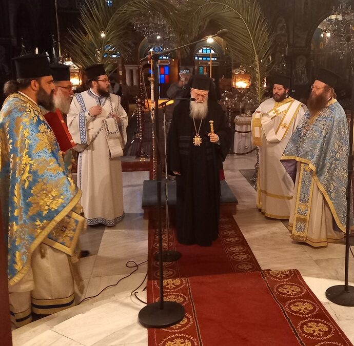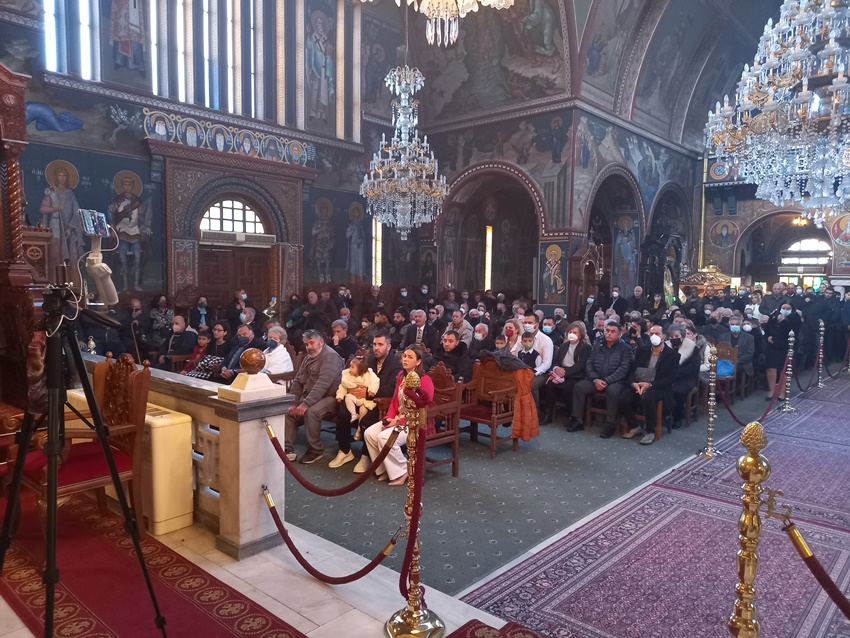 Από νωρίς το πρωί στον Ι. Καθεδρικό Ναό του Αποστόλου Παύλου έλαβε χώρα η πανηγυρική Θ. Λειτουργία, στην οποία προέστη ο Σεβ. Μητροπολίτης μας κ. Διονύσιος συμπαρεδρεύοντος του Θεοφιλεστάτου Πρωτοσυγκέλλου της Ι. Μητροπόλεως μας, Επισκόπου Κεγχρεών κ. Αγαπίου και των Ιερέων του Ι. Ναού. Τον Ι. Άμβωνα διακόνησε, με τις ευλογίες του Σεβ. Ποιμενάρχου μας, ο Νομικός Σύμβουλος της Ι. Μητροπόλεώς μας, μέλος του Μητροπολιτικού Συμβουλίου και Ιεροψάλτης κ. Πέτρος Θωμαΐδης, ο οποίος ομίλησε με λυρικό και ταυτόχρονα βαθιά θεολογικό λόγο για τον τρόπο με τον οποίο εκπληρώνεται η δικαιοσύνη, το θέλημα του Θεού, δηλαδή, με ταπείνωση, αγάπη και θυσία.