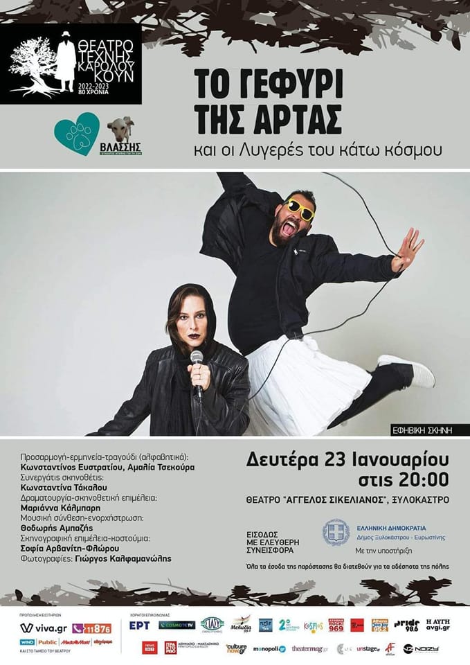 Μια πρωτότυπη θεατρική παράσταση με δημοτική ποίηση, αφήγηση, ζωντανή μουσική και τραγούδια, που απευθύνεται σε μικρούς και μεγάλους, με τίτλο *Το Γεφύρι της Άρτας και οι Λυγερές του Κάτω Κόσμου*, φιλοξενείται τη Δευτέρα 23 Ιανουαρίου, στις 20.00, στο θέατρο Άγγελος Σικελιανός στο Ξυλόκαστρο.