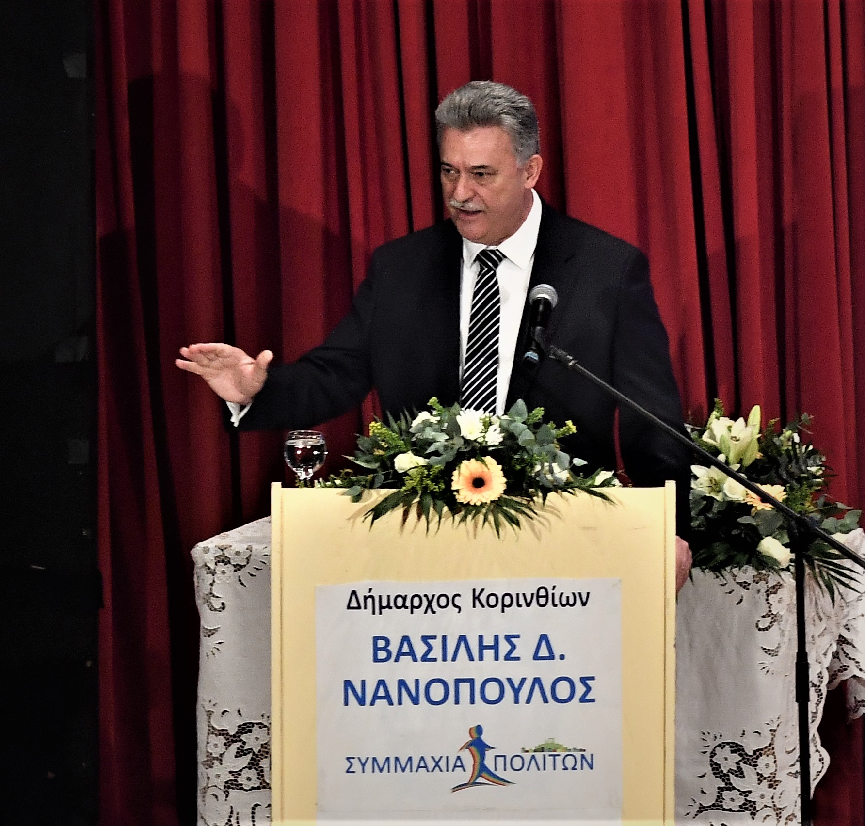 Ο Δήμαρχος Κορινθίων ευθύς, ξεκάθαρος και συγκινημένος σε αρκετά σημεία της εκδήλωσης στοιχειοθέτησε τα μεγάλα έργα που ξεκίνησαν στο δήμο Κορινθίων στα 3 αυτά χρόνια, τις παρεμβάσεις που υλοποιήθηκαν για την κοινωνία και τους πολίτες, όσα προετοιμάστηκαν και οι πολίτες βλέπουν να υλοποιούνται τώρα από μια ομάδα συμπαγή, με ικανότητες και γνώση, μια ομάδα που εργάζεται για έναν καλύτερο δήμο Κορινθίων. Ο Δήμαρχος έθεσε παράλληλα και το δίλημμα αυτών των εκλογών «Πάμε μπροστά με την ΣΥΜΜΑΧΙΑ ΠΟΛΙΤΩΝ ή πάμε πίσω με ανθρώπους που έχουν διοικήσει και πρακτικές που έχουν δοκιμαστεί και καταψηφιστεί;»