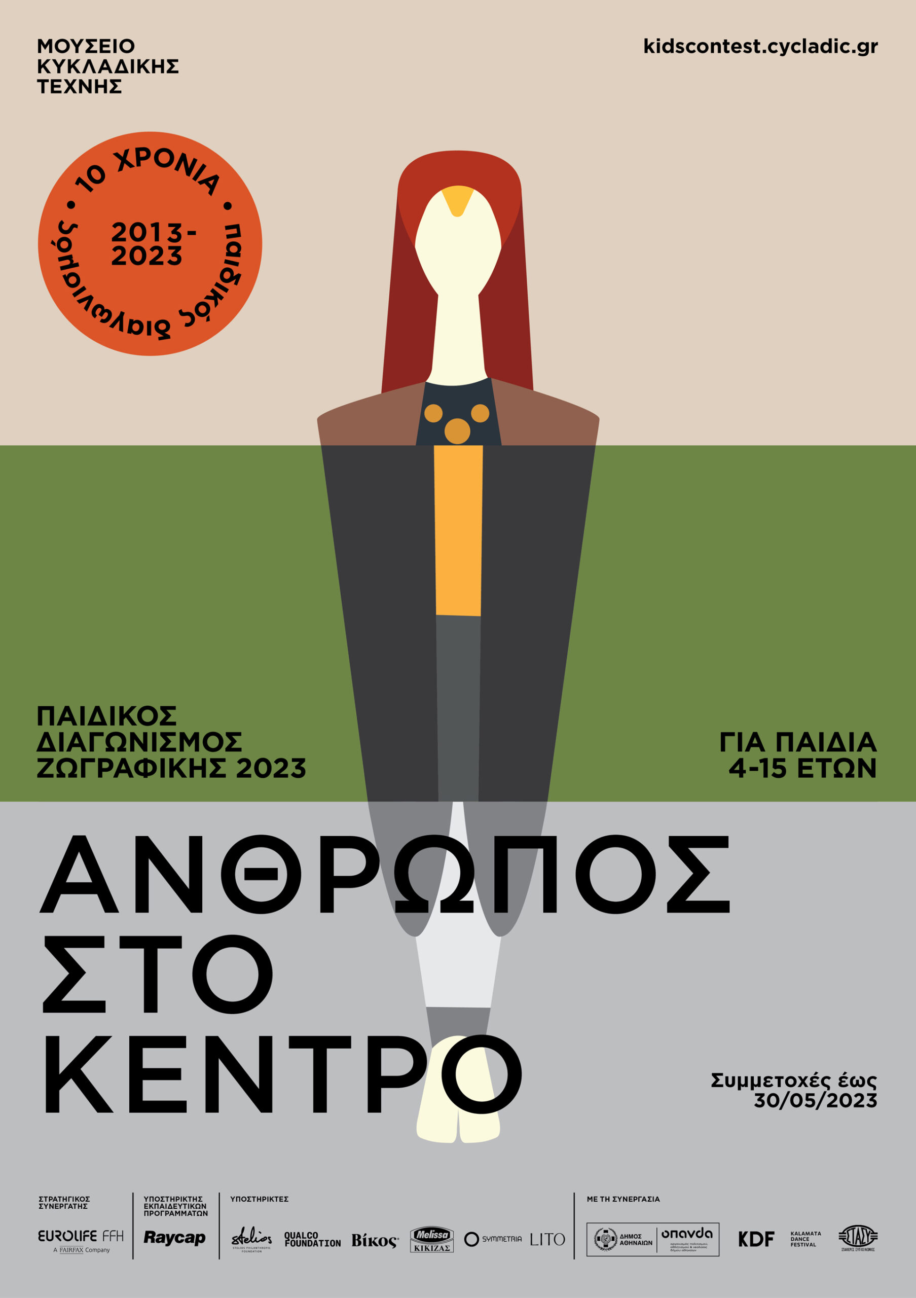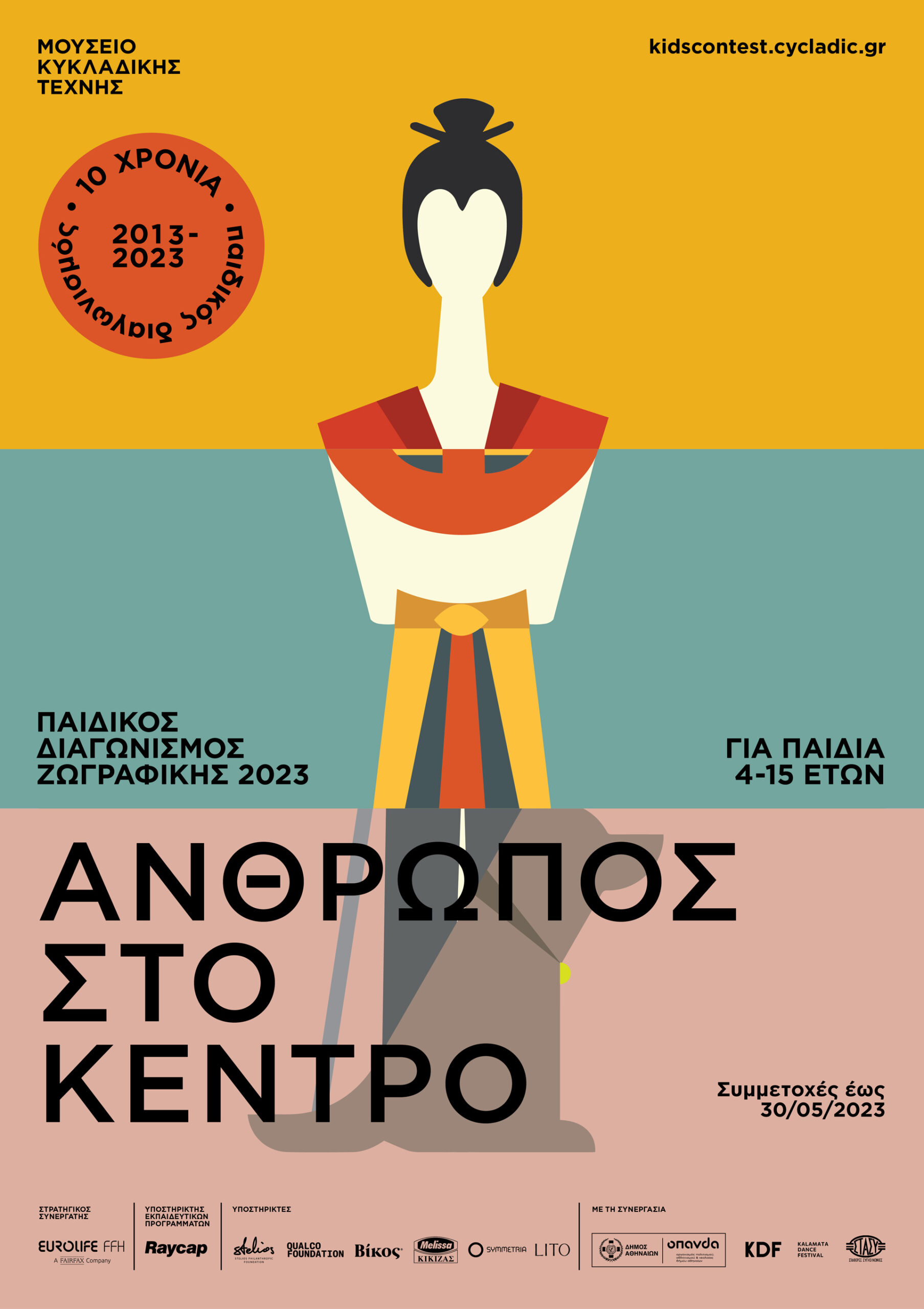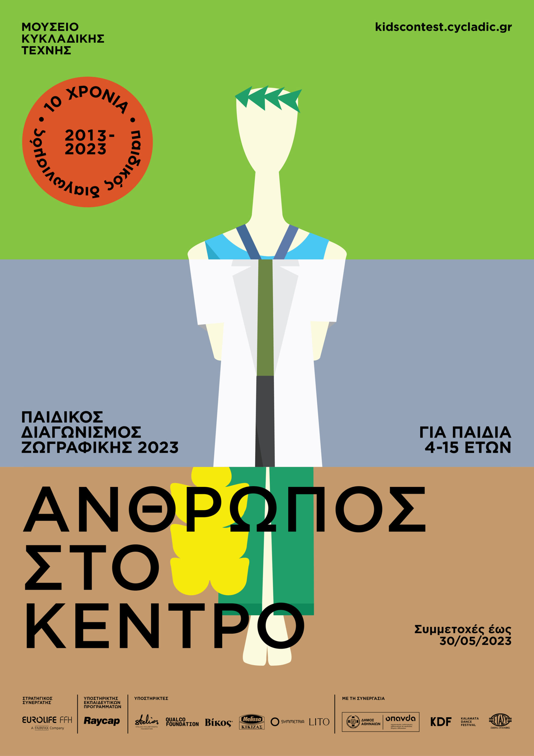 Ο Παιδικός Διαγωνισμός Ζωγραφικής του Μουσείου Κυκλαδικής Τέχνης κλείνει φέτος 10 χρόνια και το γιορτάζει! Με θέμα «Άνθρωπος στο Κέντρο», ο διαγωνισμός θα ξεκινήσει στις 23 Ιανουαρίου 2023 με προθεσμία υποβολής μέχρι τις 30 Μαΐου 2023, καλώντας τους μικρούς μας φίλους ηλικίας 4-15 ετών να αποτυπώσουν τον Άνθρωπο και το ταξίδι του στον χώρο και τον χρόνο.