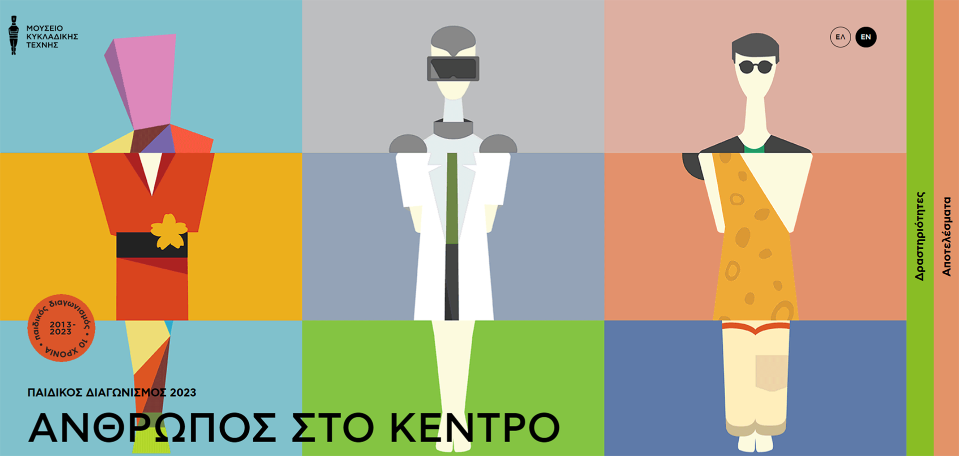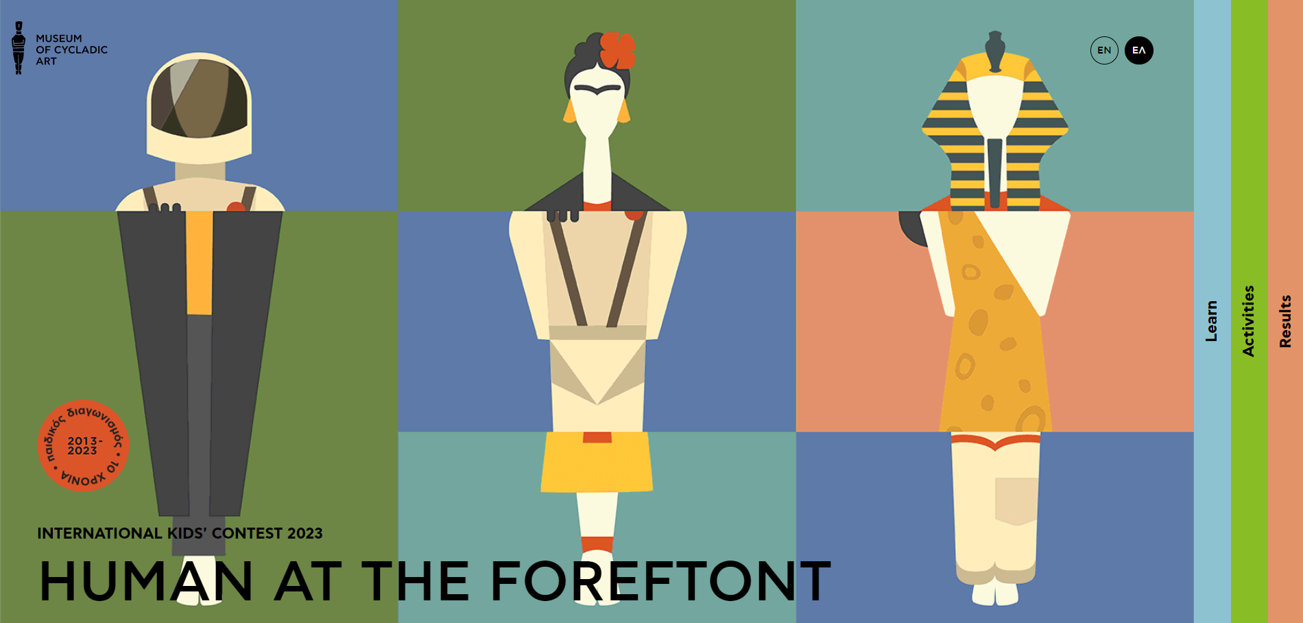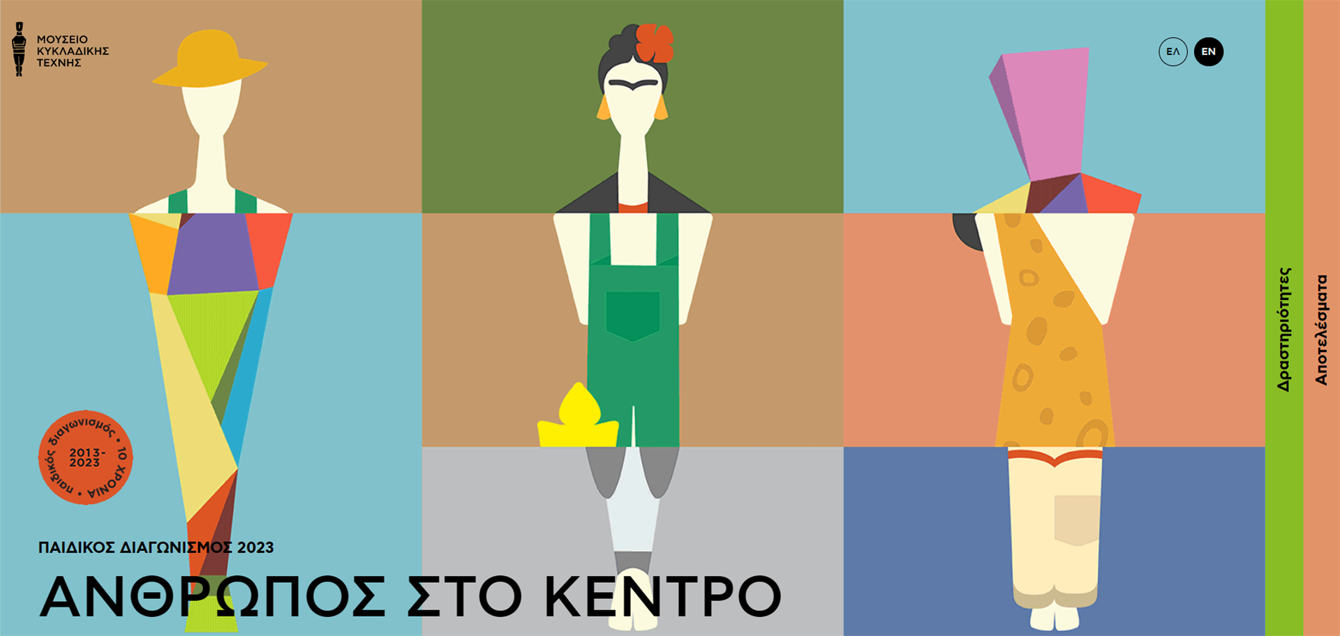 Ο Παιδικός Διαγωνισμός Ζωγραφικής του Μουσείου Κυκλαδικής Τέχνης κλείνει φέτος 10 χρόνια και το γιορτάζει! Με θέμα «Άνθρωπος στο Κέντρο», ο διαγωνισμός θα ξεκινήσει στις 23 Ιανουαρίου 2023 με προθεσμία υποβολής μέχρι τις 30 Μαΐου 2023, καλώντας τους μικρούς μας φίλους ηλικίας 4-15 ετών να αποτυπώσουν τον Άνθρωπο και το ταξίδι του στον χώρο και τον χρόνο.