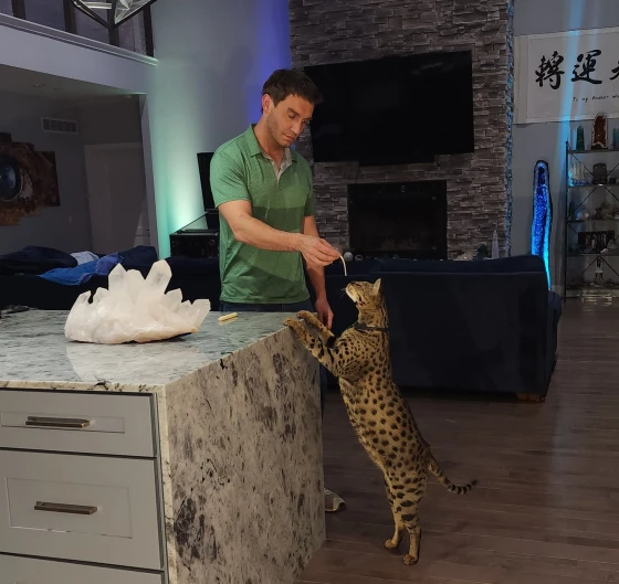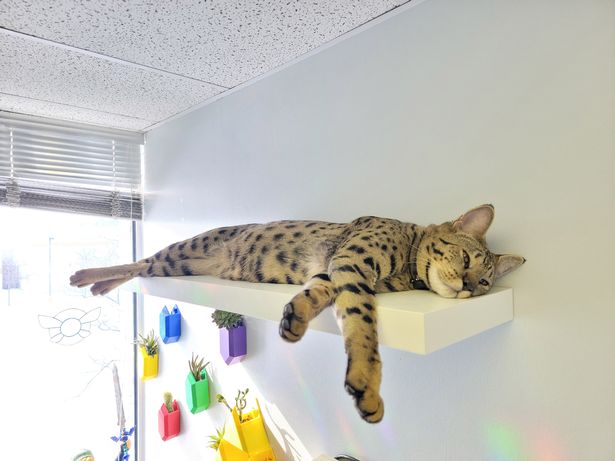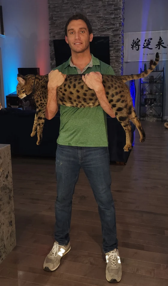 Ο William τον παίρνει συχνά μαζί του στη δουλειά όπου τον αγαπούν όλοι και δεν χορταίνουν να του δίνουν αγκαλιές και φιλιά. Το αστείο είναι, όπως θα πει ο William, ότι αν δεν ξέρει μια γάτα ή ένα σκύλο θα φοβηθεί πολύ και θα πάει να κρυφτεί. Παρά το μέγεθός του είναι πολύ φοβιτσάρης. «Η γνώμη μου είναι» θα πει ο William «ότι οι γάτες αυτής της ράτσας, οι γάτες Σαβάνα δεν είναι για τους άπειρους ούτε για εκείνους που θέλουν να φαίνεται η γάτα τους άγρια. »