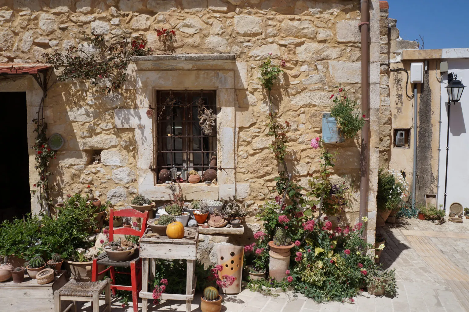 Πιο γοητευτικό σημείο η παλαιά γειτονιά που φανερώνει την αίγλη του χωριού άλλων καιρών. Από τα πιο αξιόλογα σημεία του είναι το παρεκκλήσι της Παρθένου Μαρίας του 13ου αιώνα, αλλά και το μοναστήρι του Αγίου Γεωργίου στο Καρύδι, στα νότια του χωριού μόλις 3 χιλιόμετρα μακριά. Δίπλα του βρίσκεται και ένα παλιό ελαιοτριβείο του 1860 με 12 εντυπωσιακές καμάρες ενώ λίγο πριν το μοναστήρι στα δεξιά υπάρχει η εκκλησία της Κοίμησης της Θεοτόκου με τοιχογραφίες που χρονολογούνται από τον 11ο έως τον 14ο αιώνα.