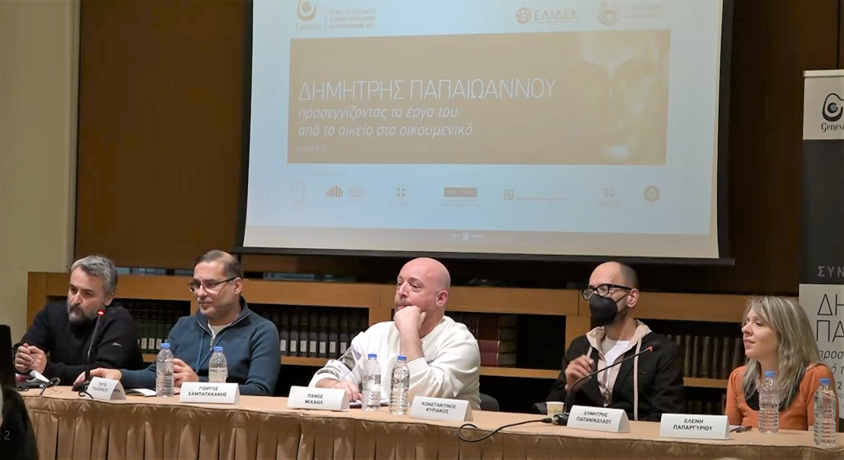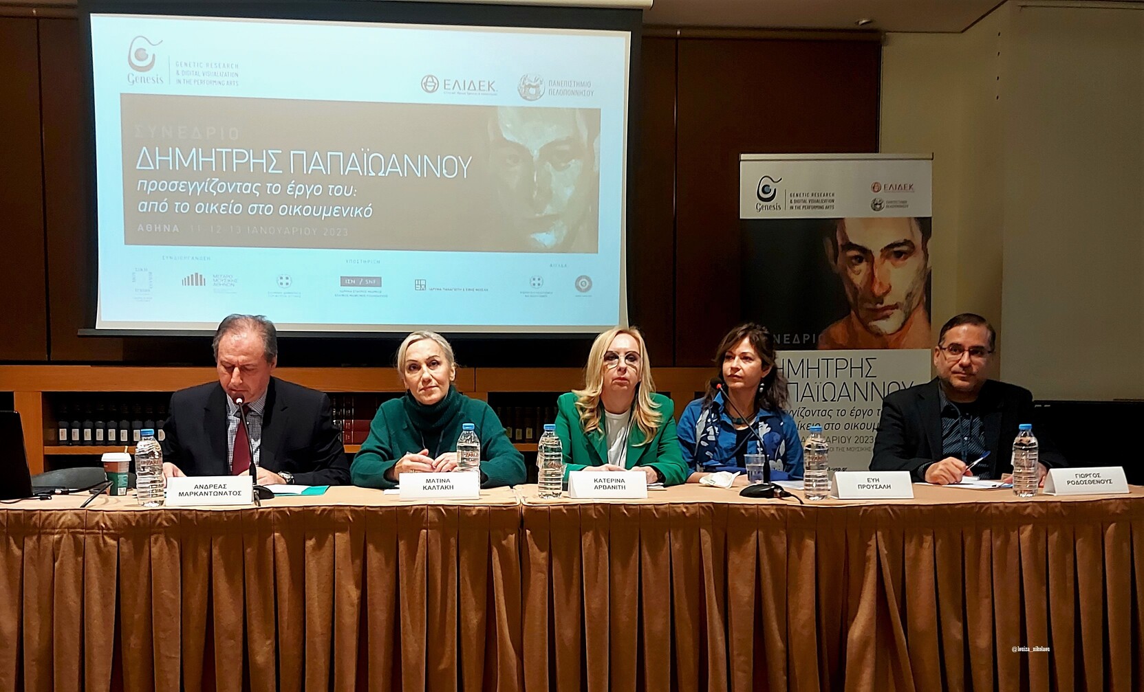 Το Ερευνητικό έργο «Γένεσις: Γενετική Έρευνα και Ψηφιακή Οπτικοποίηση στις Παραστατικές Τέχνες» που υλοποιείται από το Πανεπιστήμιο Πελοποννήσου με επιστημονική υπεύθυνη την επίκουρη καθηγήτρια Έλενα Παπαλεξίου, και χρηματοδοτείται από το Ελληνικό Ίδρυμα Έρευνας και Καινοτομίας – ΕΛ.ΙΔ.Ε.Κ., διοργάνωσε ένα τριήμερο επιστημονικό συνέδριο με τίτλο «Προσεγγίζοντας το έργο του Δημήτρη Παπαϊωάννου: Από το οικείο στο οικουμενικό» στις 11, 12 και 13 Ιανουαρίου 2023, στον Πολυχώρο του Συλλόγου Οι Φίλοι της Μουσικής, στο Μέγαρο Μουσικής Αθηνών. Για τη διοργάνωση συνέδραμαν επίσης η Μουσική Βιβλιοθήκη «Λίλιαν Βουδούρη» του Συλλόγου Οι Φίλοι της Μουσικής και το Μέγαρο Μουσικής Αθηνών.