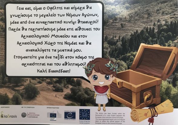 - Η Εφορεία Αρχαιοτήτων Κορινθίας σε συνεργασία με τη Α.Μ.Κ.Ε. Diadrasis, το χρονικό διάστημα 19 – 23 Φεβρουαρίου 2024, υλοποίησε στον Αρχαιολογικό χώρο και στο Μουσείο της Αρχαίας Νεμέας εκπαιδευτικό πρόγραμμα με τίτλο: «Τα μυστικά του Οφέλτη».