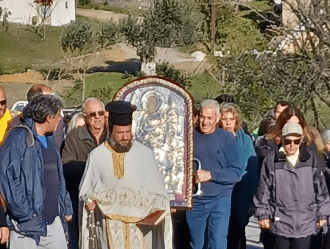 Ο ιερέας Παπακούρνης παρέλαβε από τον ιερέα Παπαποστόλη την εικόνα και συνοδεία των ιεροψαλτών και πλήθος πιστών με δάκρυα στα μάτια έψελναν το απολυτίκιο του Αγίου κατά την διάρκεια της λιτανείας στο χωριό που ακολούθησε.