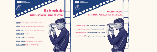 - Η Eduact διοργανώνει με την Υποστήριξη και Συνεργασία του Δήμου Θεσσαλονίκης στα πλαίσια Ευρωπαϊκού έργου ένα Διεθνές Φεστιβάλ Κινηματογράφου για νέους στο Πολιτιστικό Κέντρο Τούμπας την Τετάρτη 03/04/2023, 14.30-20.30.