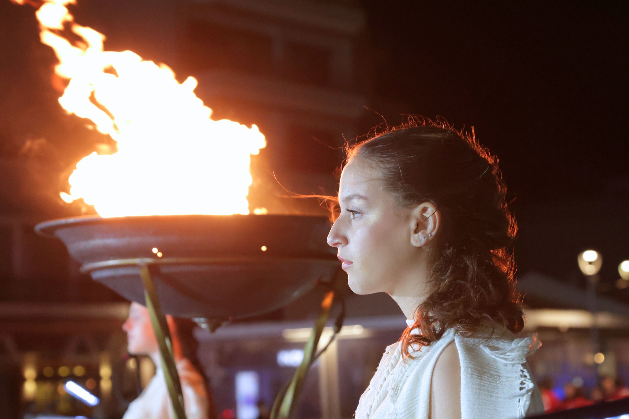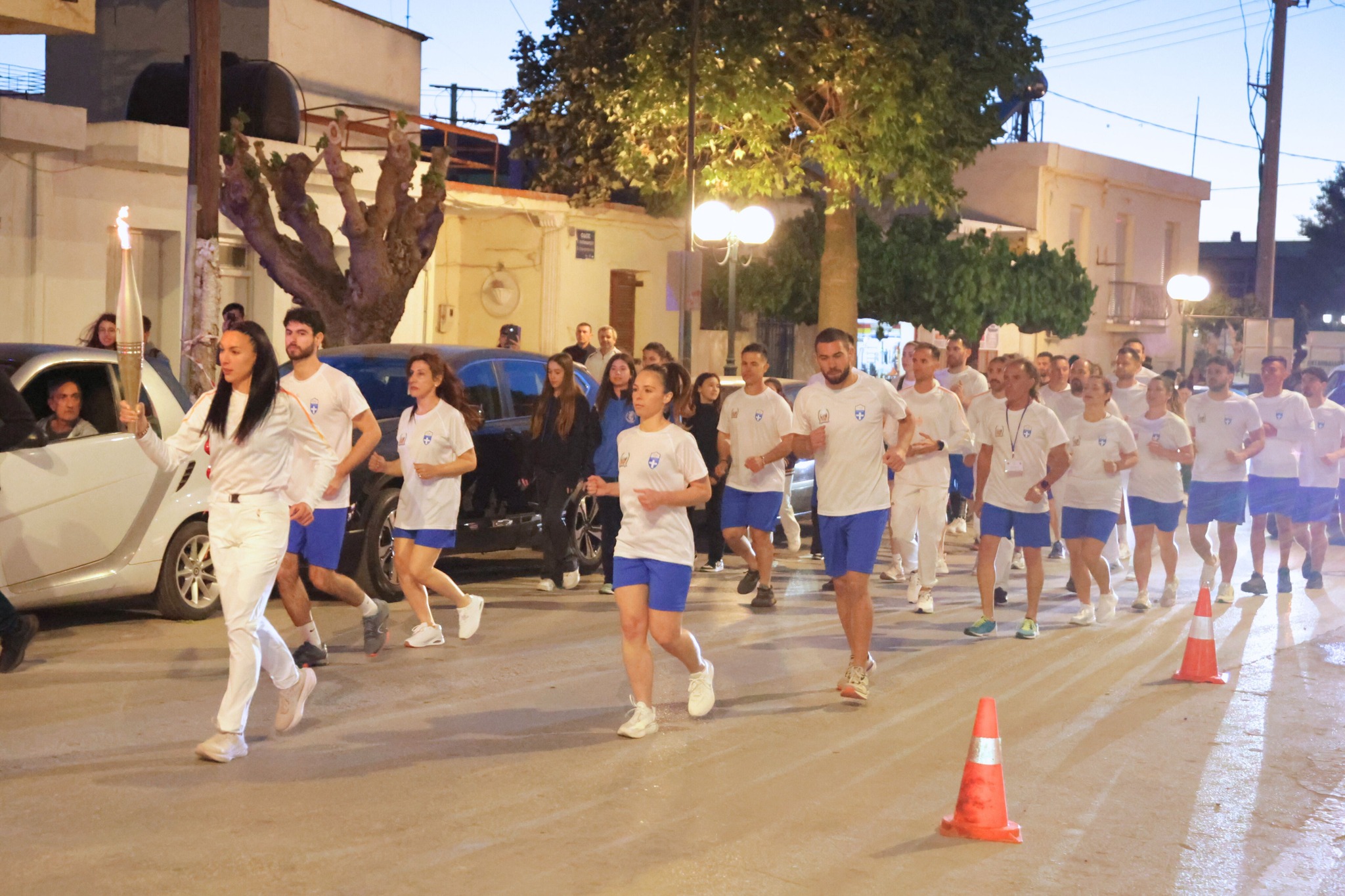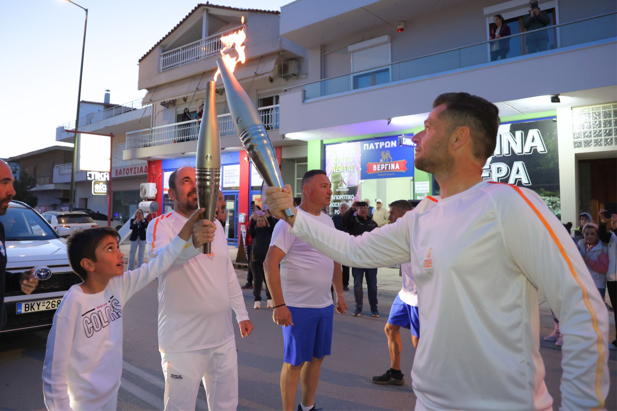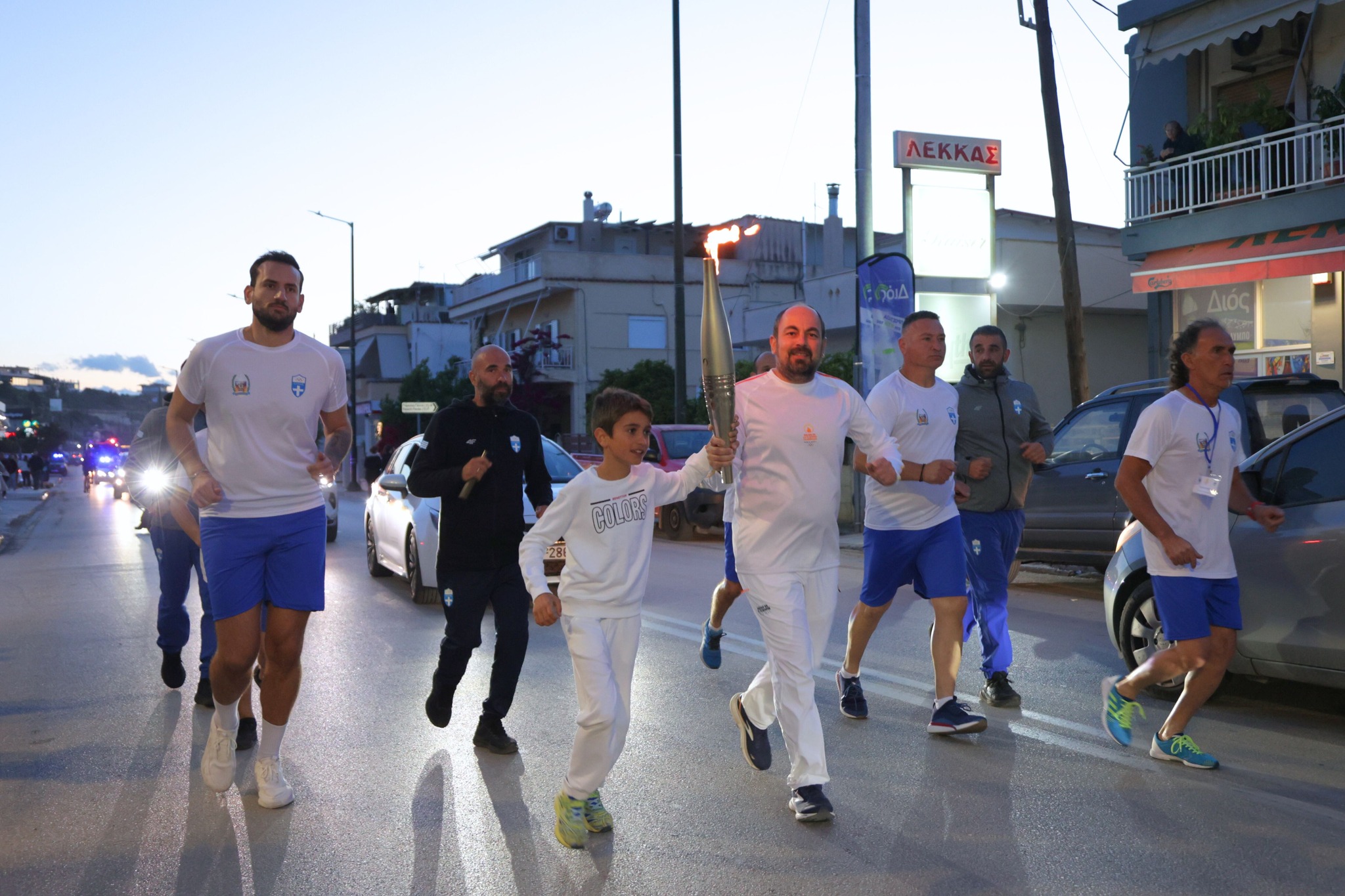 Μέσα από τους κεντρικούς δρόμους της πόλης, η φλόγα έφτασε στην πλατεία Ελευθερίου Βενιζέλου όπου τον βωμό άναψε ο Κορίνθιος Ολυμπιονίκης & μέλος της Ε.Ο.Ε. Νίκος Ξυλούρης.