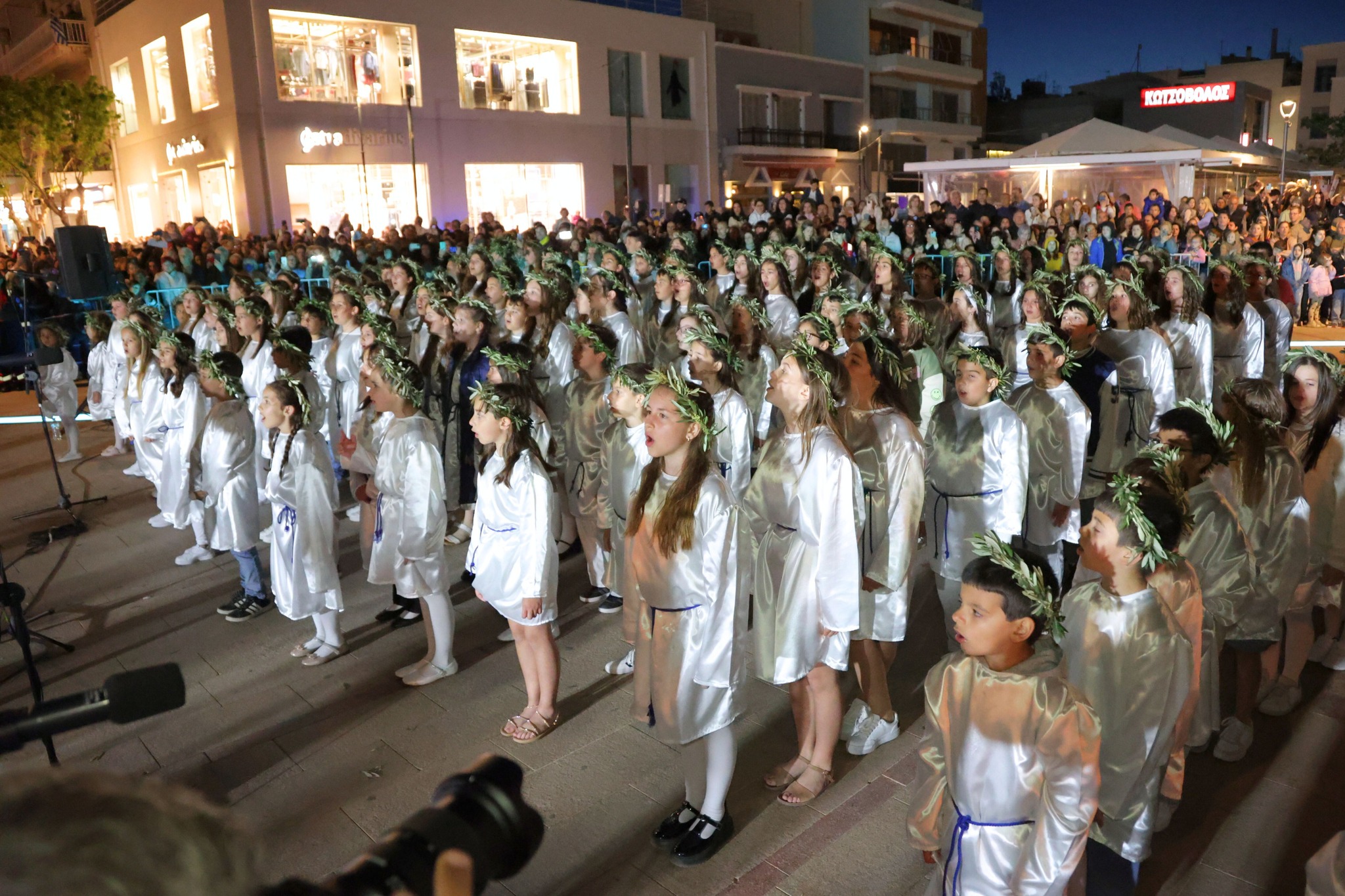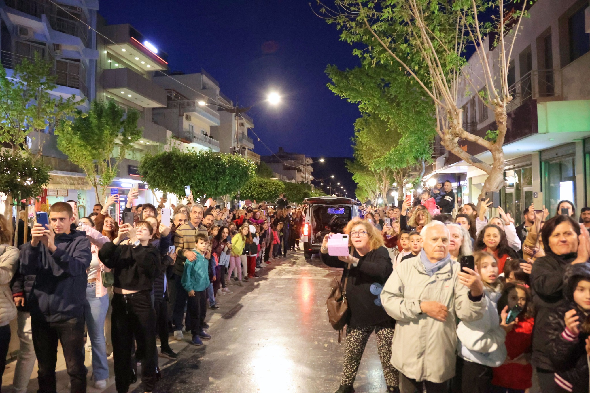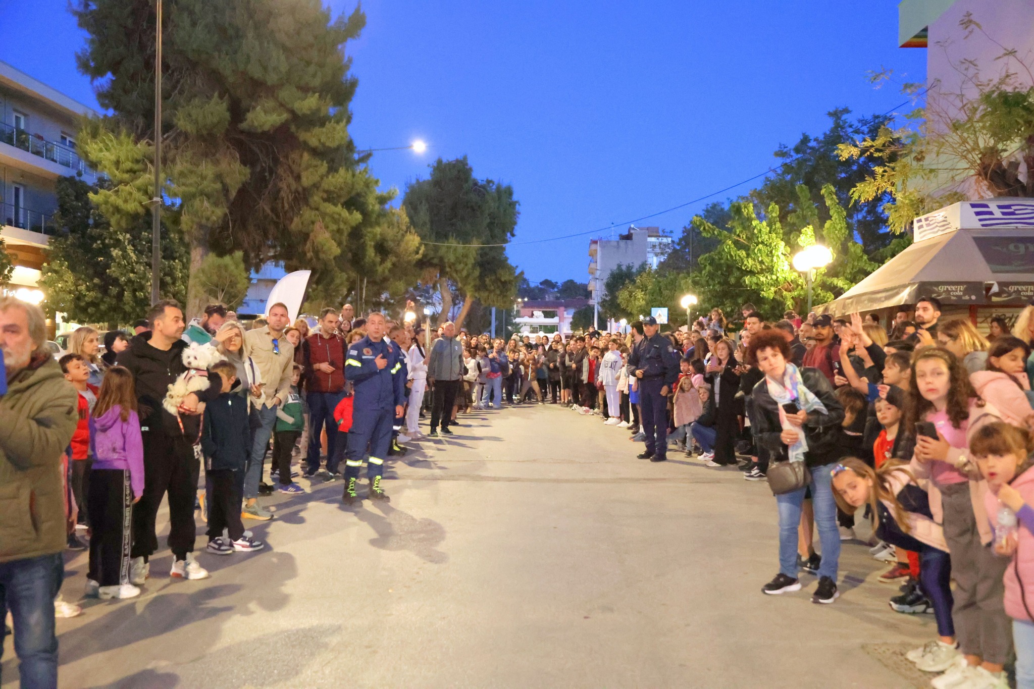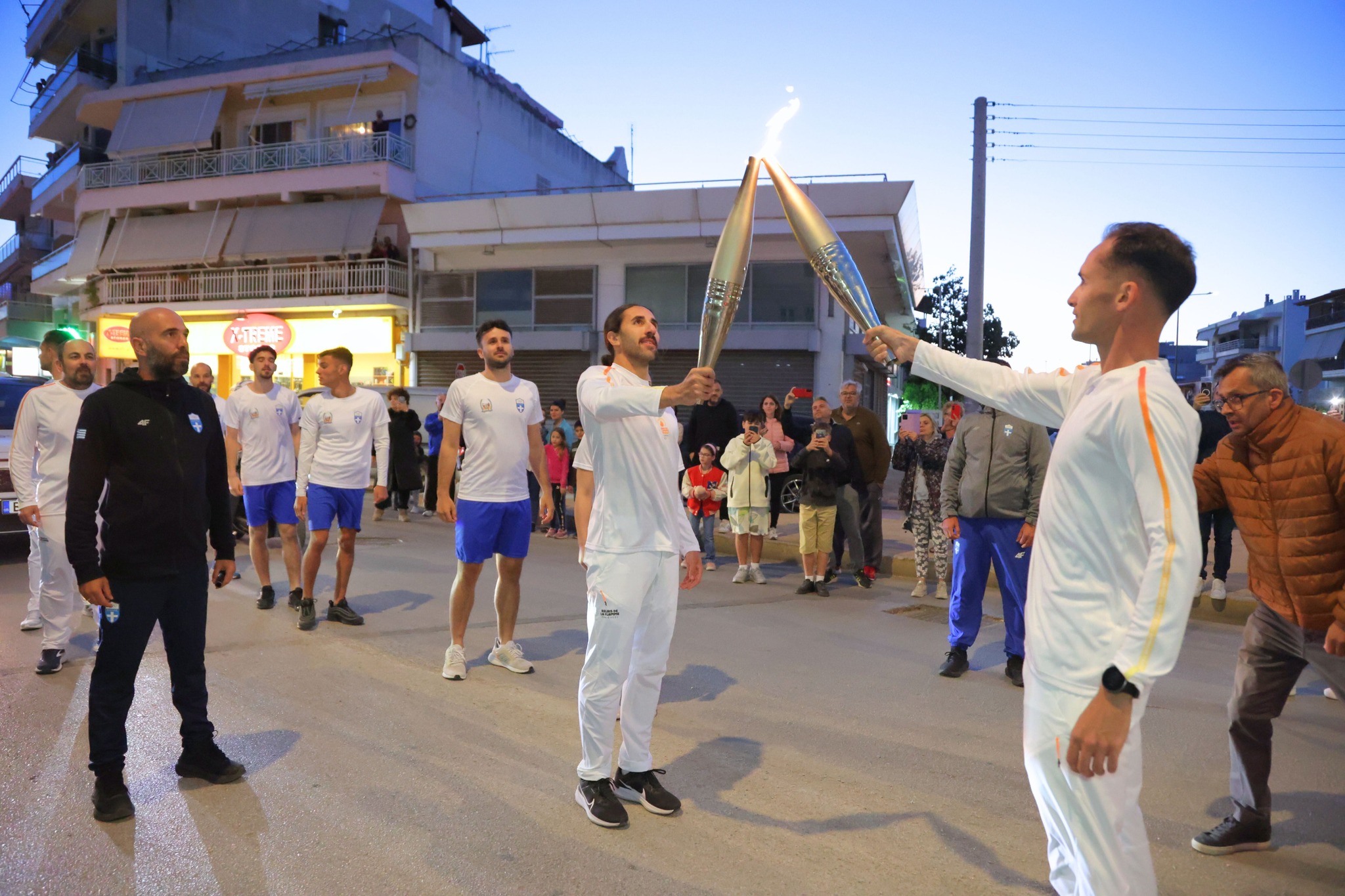 Μέσα από τους κεντρικούς δρόμους της πόλης, η φλόγα έφτασε στην πλατεία Ελευθερίου Βενιζέλου όπου τον βωμό άναψε ο Κορίνθιος Ολυμπιονίκης & μέλος της Ε.Ο.Ε. Νίκος Ξυλούρης.