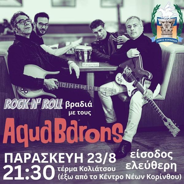 Παρασκευή, 23 Αυγούστου τέρμα Κολιάτσου – Μουσική βραδιά με το σχήμα AQUA BARONS.