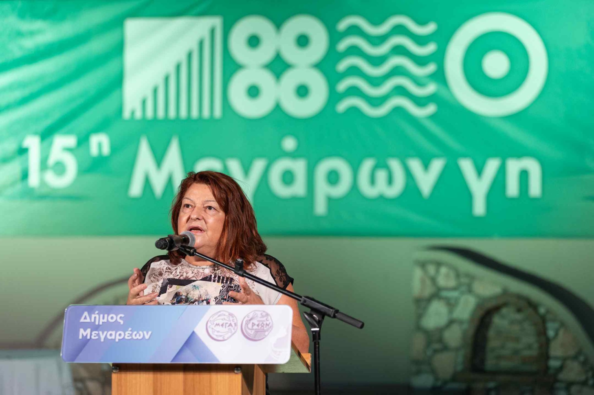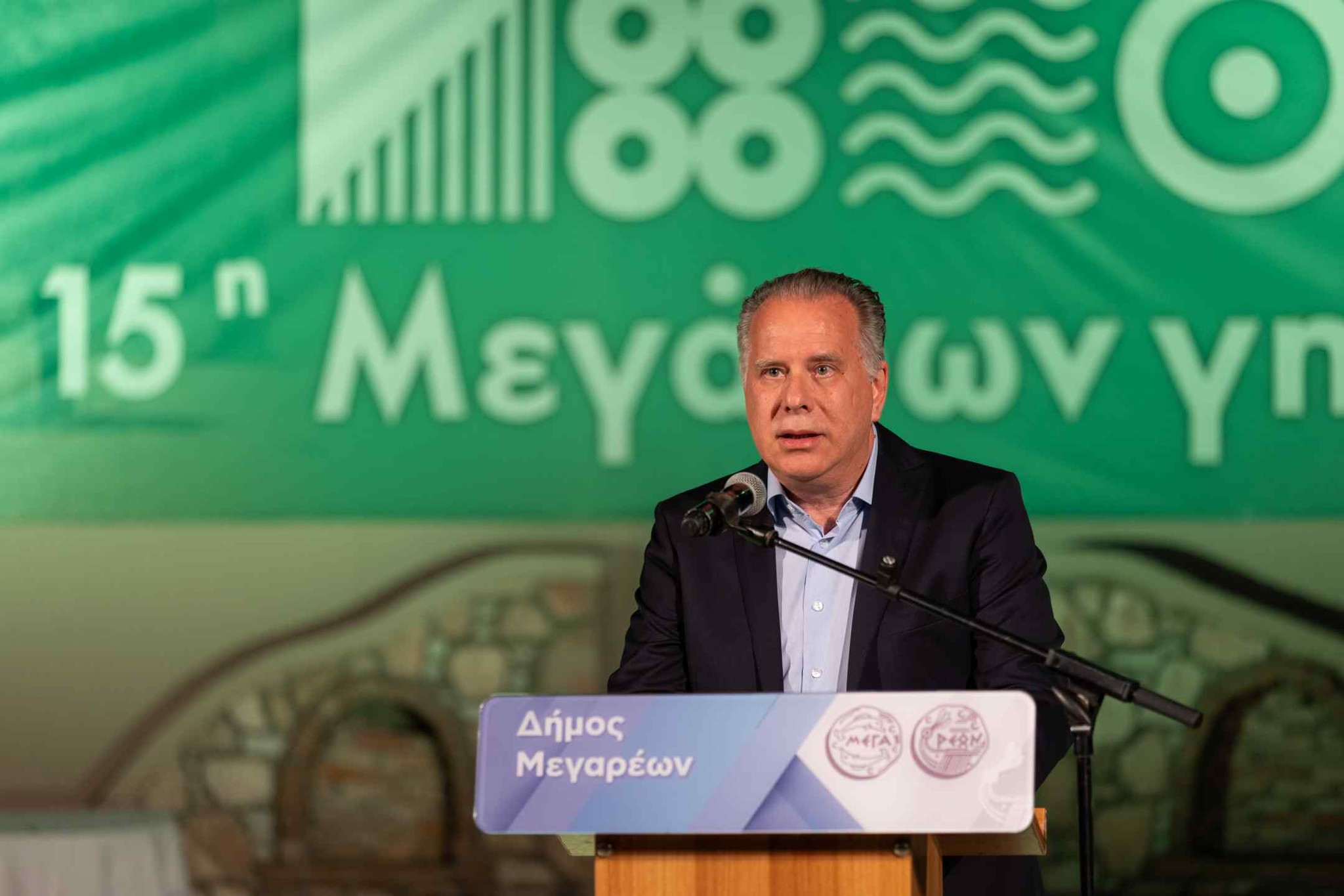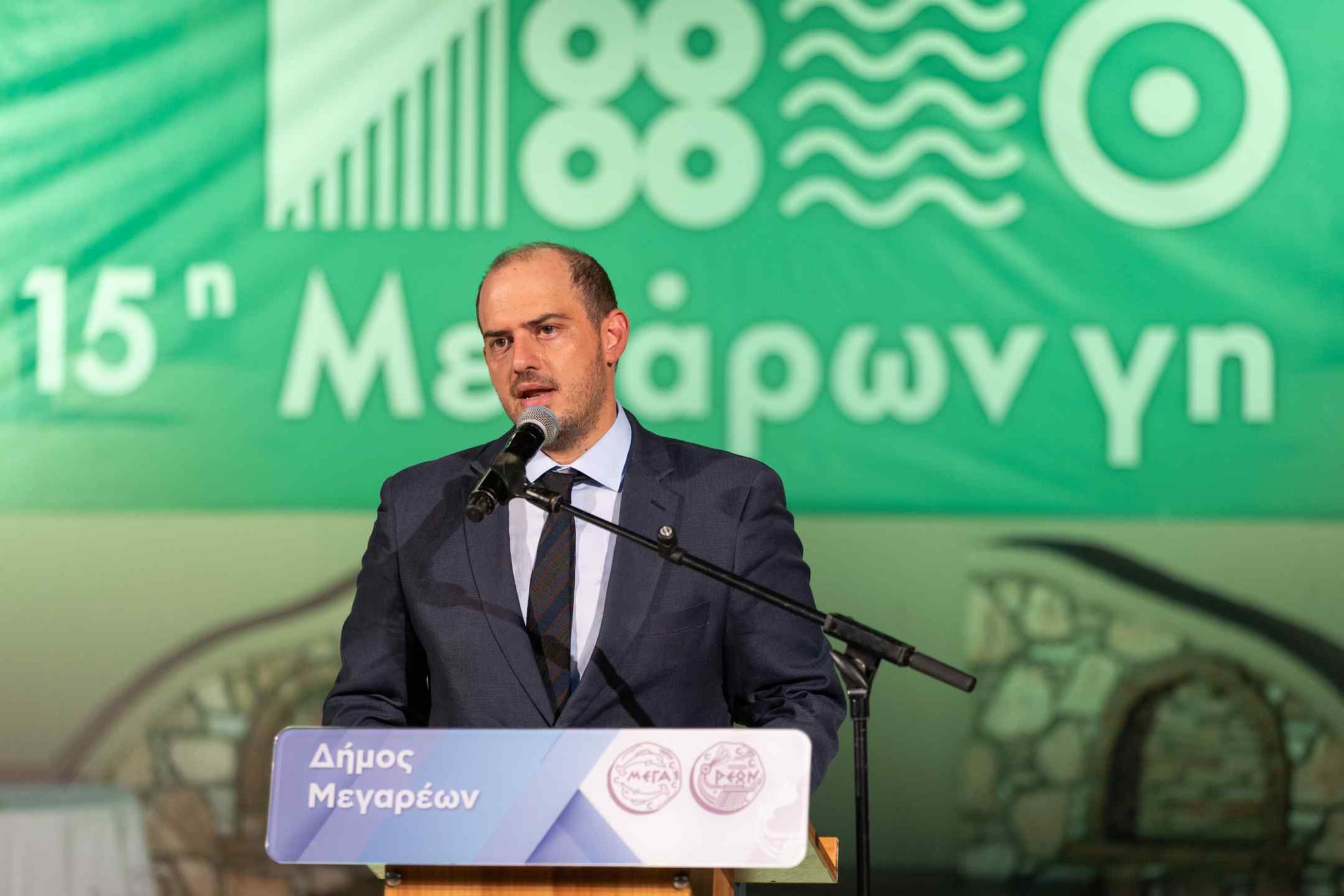 Ακολουθεί ο χαιρετισμός που εκφώνησε ο δήμαρχος Μεγαρέων, Παναγιώτης Μαργέτης. «Θα ήθελα να σας καλωσορίσω όλες και όλους στη 15η «Μεγάρων γη», στη γιορτή της μεγαρικής γης, που από αυτή τη χρονιά θα καλείται και θα είναι αγροφεστιβάλ.