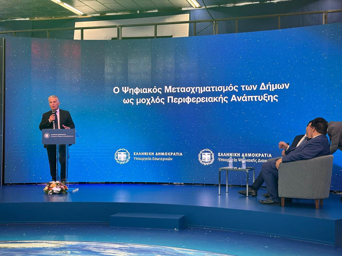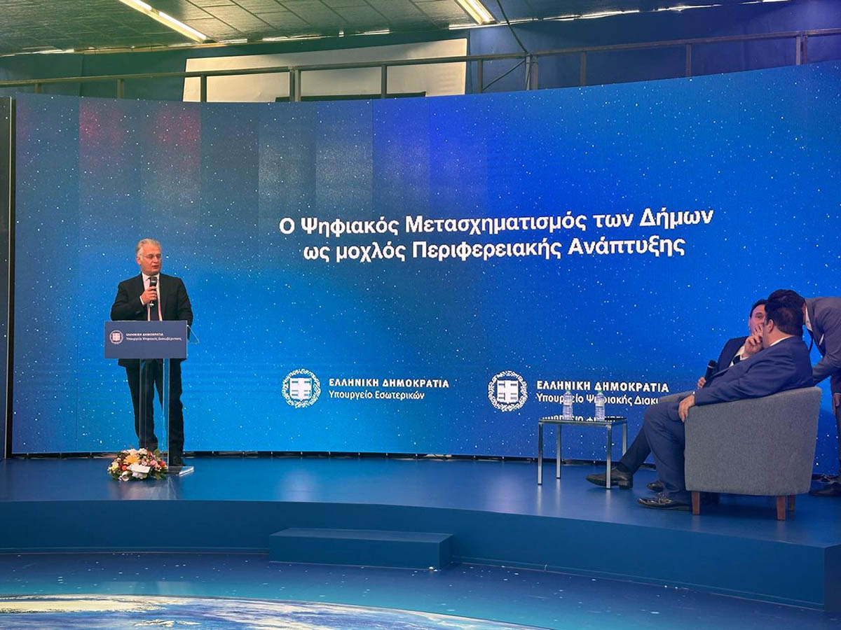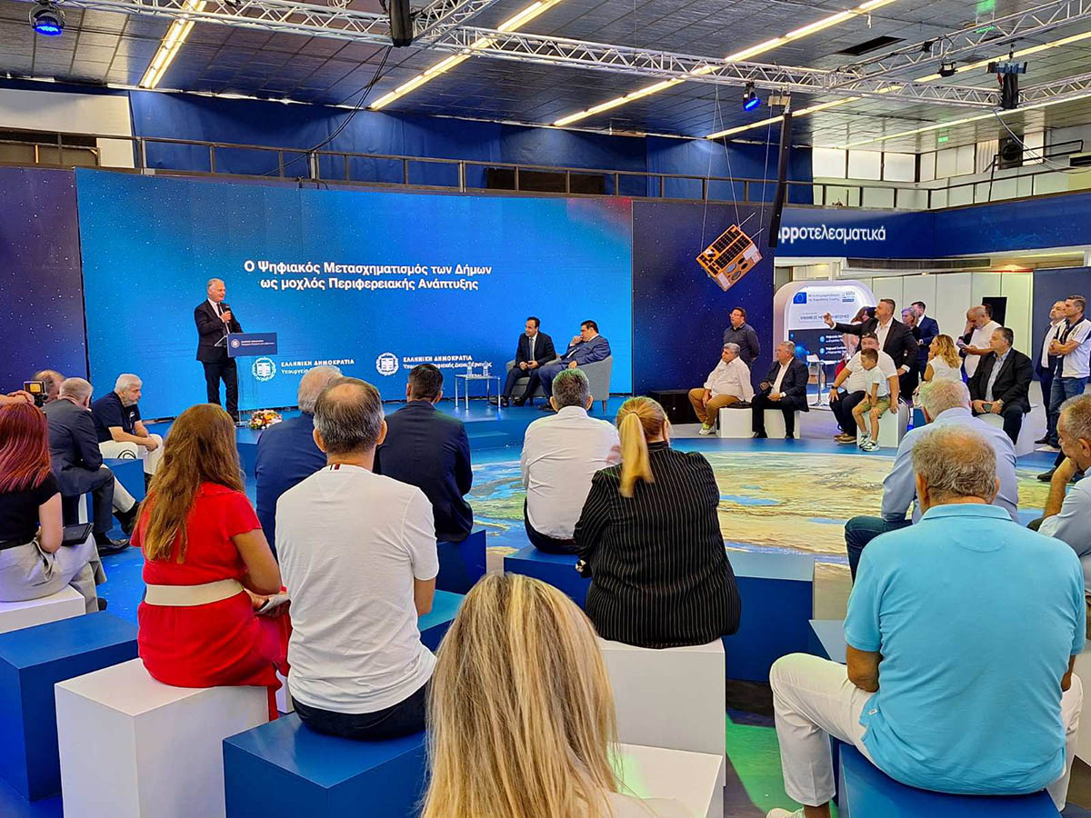Η εκδήλωση «Ο ψηφιακός μετασχηματισμός των Δήμων ως μοχλός περιφερειακής ανάπτυξης» διοργανώθηκε το Σάββατο 7 Σεπτεμβρίου στην έναρξη της 88ης Διεθνούς Έκθεσης Θεσσαλονίκης στο περίπτερο 12 του Υπουργείου Ψηφιακής Διακυβέρνησης.