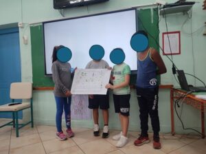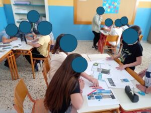 Οι μαθητές ανέφεραν τις δραστηριότητες, τις εγκαταστάσεις και τον εξοπλισμό που θα επιθυμούσαν να περιλαμβάνει η αυλή του σχολείου τους. Επιπλέον, έδωσαν ένα χαρακτηρισμό για την αυλή, προσδιορίζοντας με μία λέξη πώς την φαντάζονται στο μέλλον. Την ίδια στιγμή πήραν μολύβι και χαρτί και αποτύπωσαν τις σκέψεις τους.