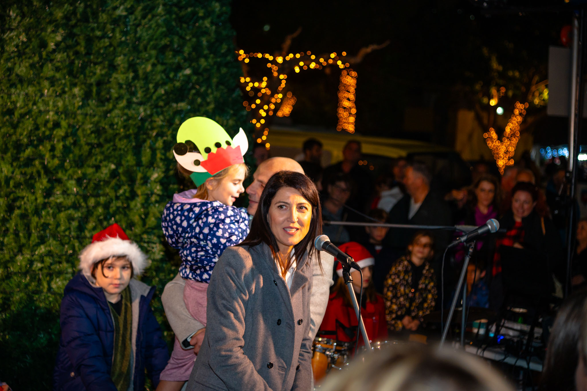 Τη φωταγώγηση του οκτάμετρου χριστουγεννιάτικου δέντρου έκανε ο αντιδήμαρχος Πολιτισμού του Δήμου Σικυωνίων Κώστας Συριάνος, που έδωσε το σύνθημα για να ξεκινήσει η γιορτή! Τις ευχές του από μικροφώνου έδωσαν η πρόεδρος της Κοινότητας Κιάτου Αλεξάνδρα Αβραμοπούλου και ο πρόεδρος του Εμπορικού Συλλόγου Κιάτου, Χρήστος Κούβας.