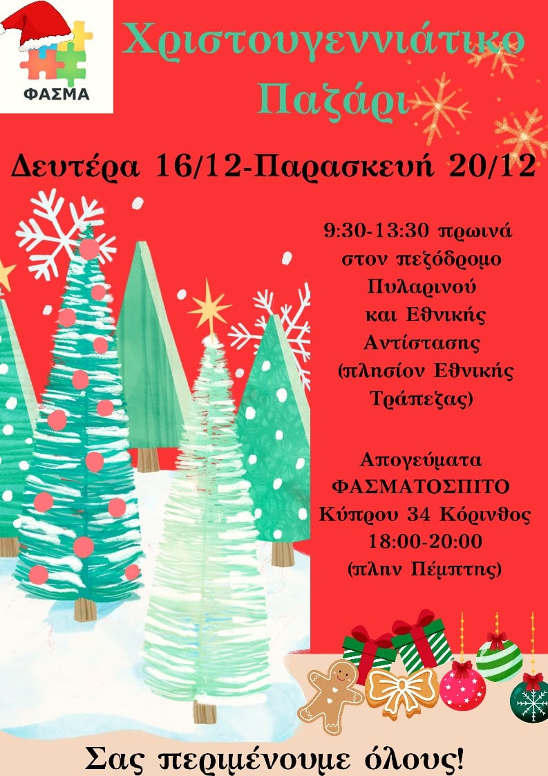 Χριστουγεννιάτικο Παζάρι στην Κόρινθο από το ΦΑΣΜΑ Σωματείο Γονέων & Φίλων Παιδιών και Ατόμων Με Αυτισμό Κορινθίας.
