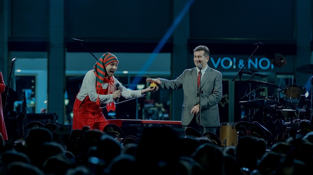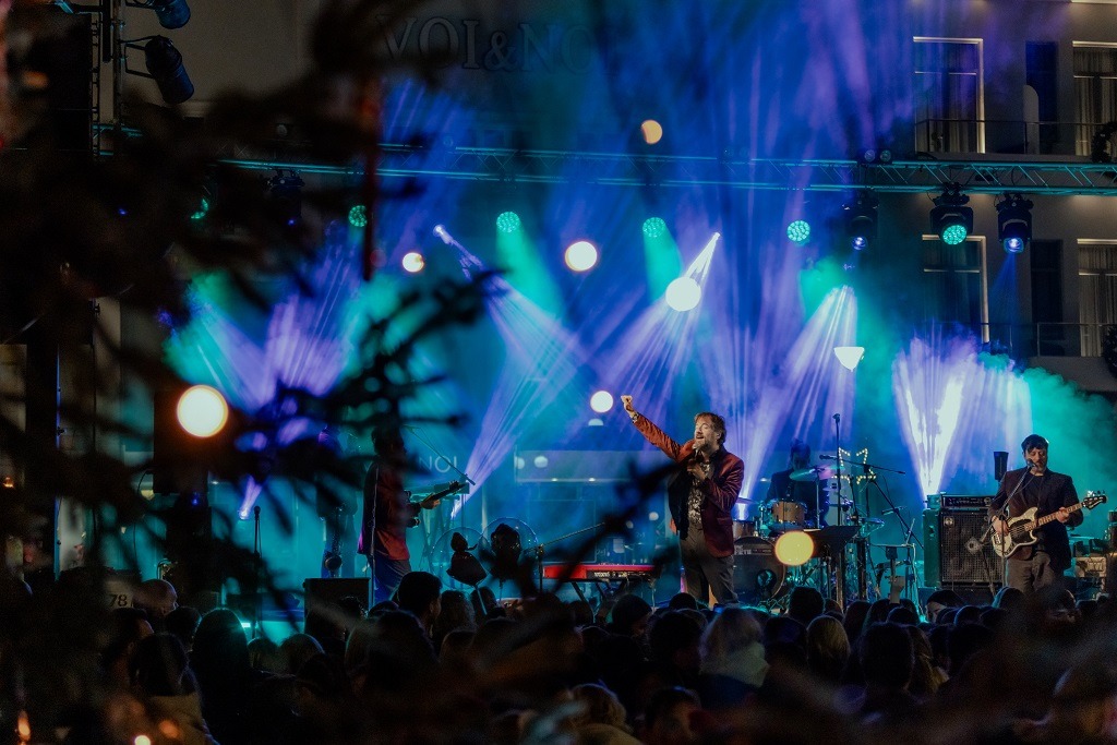 Στη συνέχεια, μαζί με τα παιδιά, έδωσε το σύνθημα για την αντίστροφη μέτρηση που κορυφώθηκε με τον φωτισμό του μεγάλου χριστουγεννιάτικου δέντρου με τα χιλιάδες λαμπιόνια.