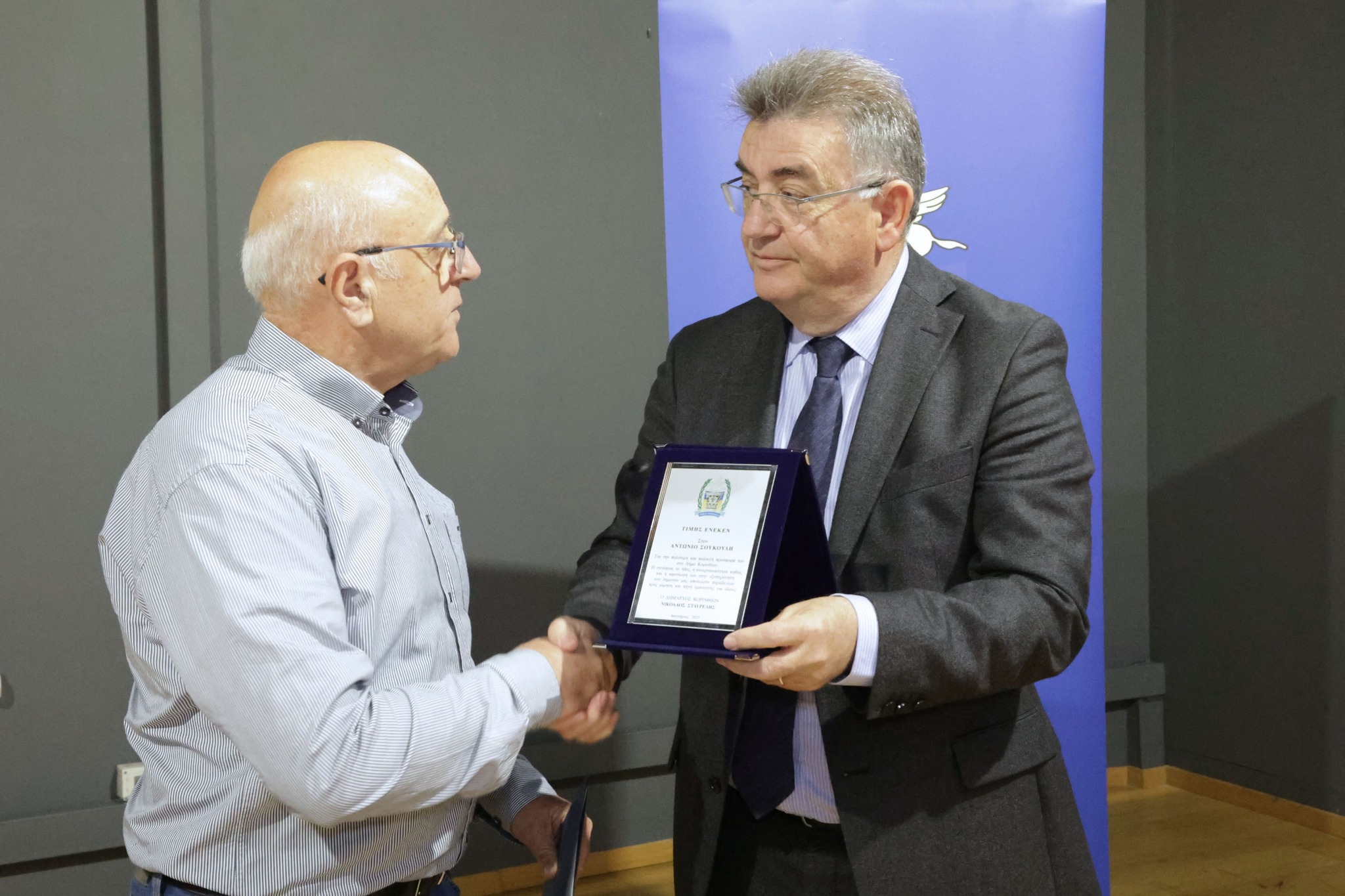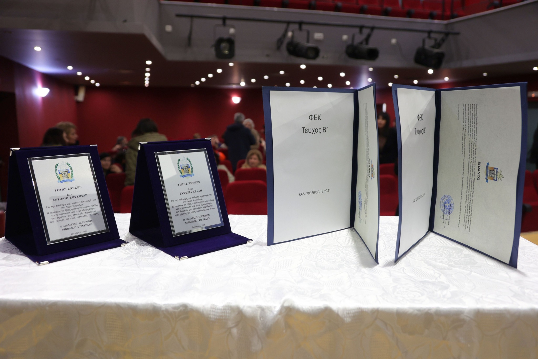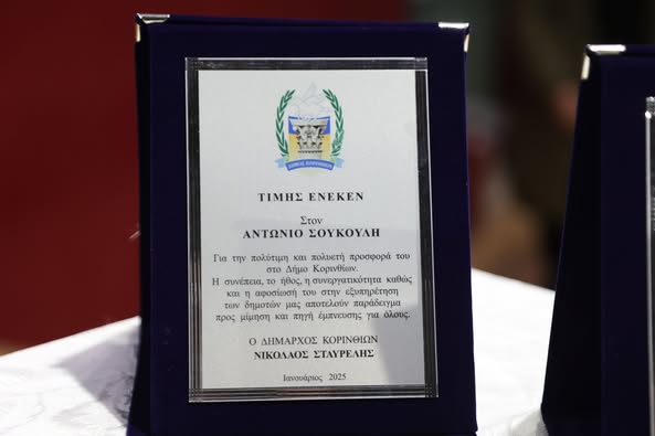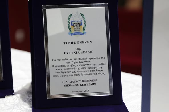 Την κυρία Ευτυχία Δελή και τον κύριο Αντώνιο Σούκουλη με την απονομή Επαίνου ο οποίος θα δημοσιευτεί επίσημα και όπως τους αρμόζει σε ΦΕΚ, κατόπιν της ήδη υπογεγραμμένης απόφασης του Γενικού Γραμματέα της Αποκεντρωμένης Διοίκησης Πελοποννήσου και Ιονίων, ύστερα από εισήγηση του Δημάρχου κ. Νίκου Σταυρέλη και τη σύμφωνη γνώμη σύσσωμου του Υπηρεσιακού Συμβουλίου…».