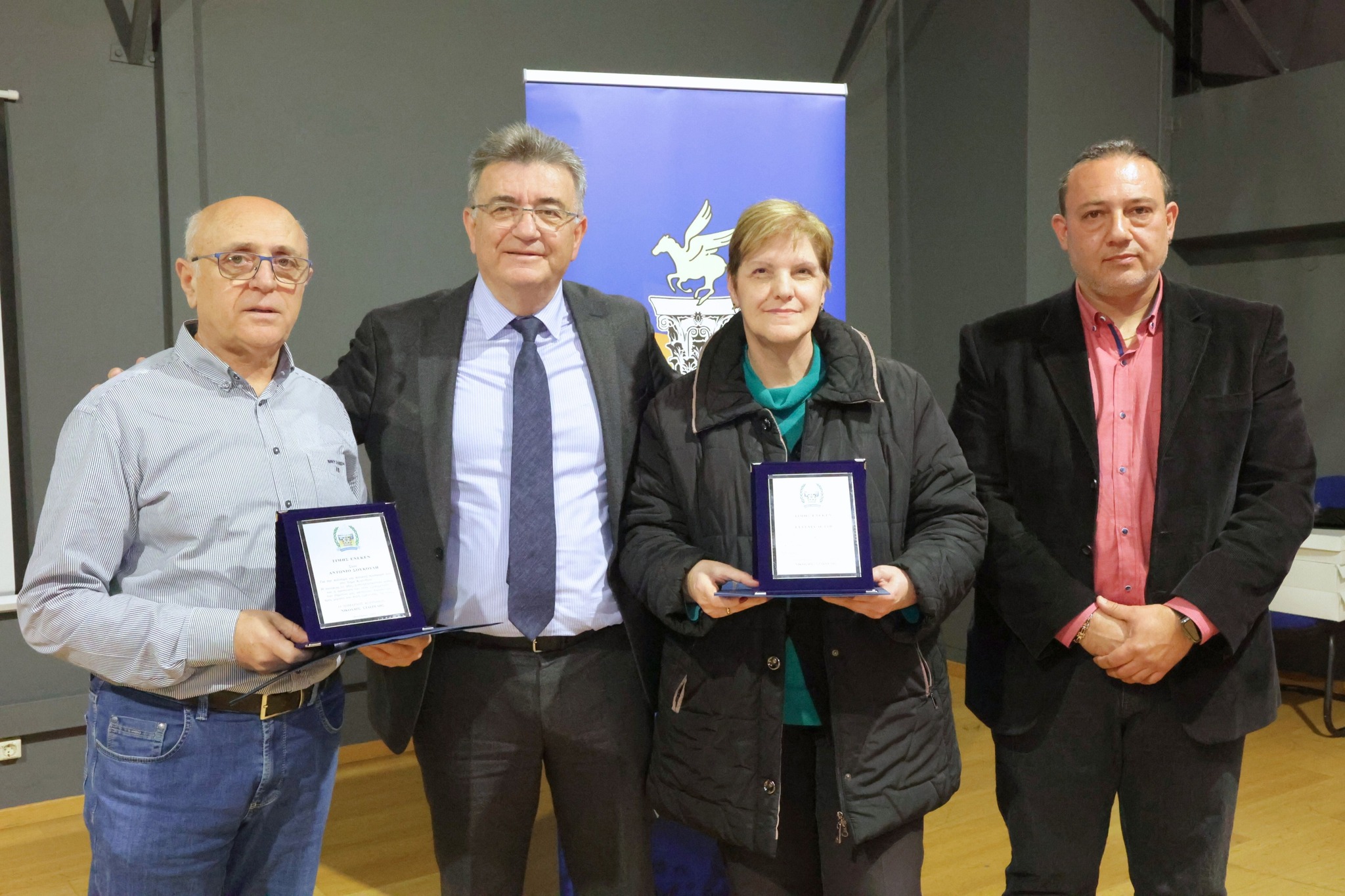 Η πρόεδρος των εργαζομένων του Δήμου, Κωνσταντίνα Μελέτη, στον σύντομο χαιρετισμό της εξέφρασε την εκτίμησή της για την πρωτοβουλία της βράβευσης των δύο συναδέλφων της αναγνωρίζοντας πως «πρόκειται για συναδέλφους με υψηλή παραγωγικότητα, την οποία και επικροτούμε!